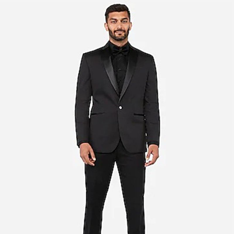 Costume noir 2 pièces pour homme, coupe cintrée, smoking de mariage personnalisé, ensemble 2 pièces pour bal de promo, mariage