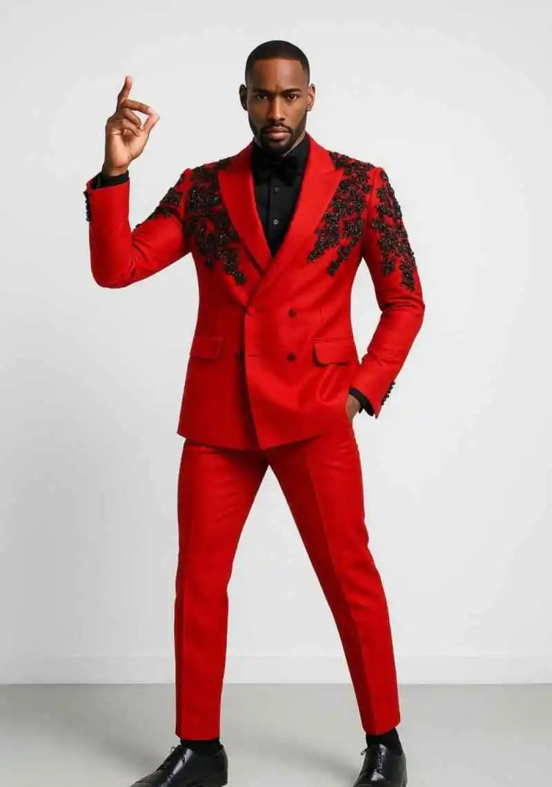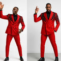 Make a grand, tailored statement with this Appliqués Classic Wedding Suit: a double‑breasted, peaked‑lapel tuxedo jacket paired with matching trousers, designed for grooms, prom attendees, and formal evening events. With elegant appliqué detailing and full customization, this 2‑piece delivers timeless formality with personalized couture touches.