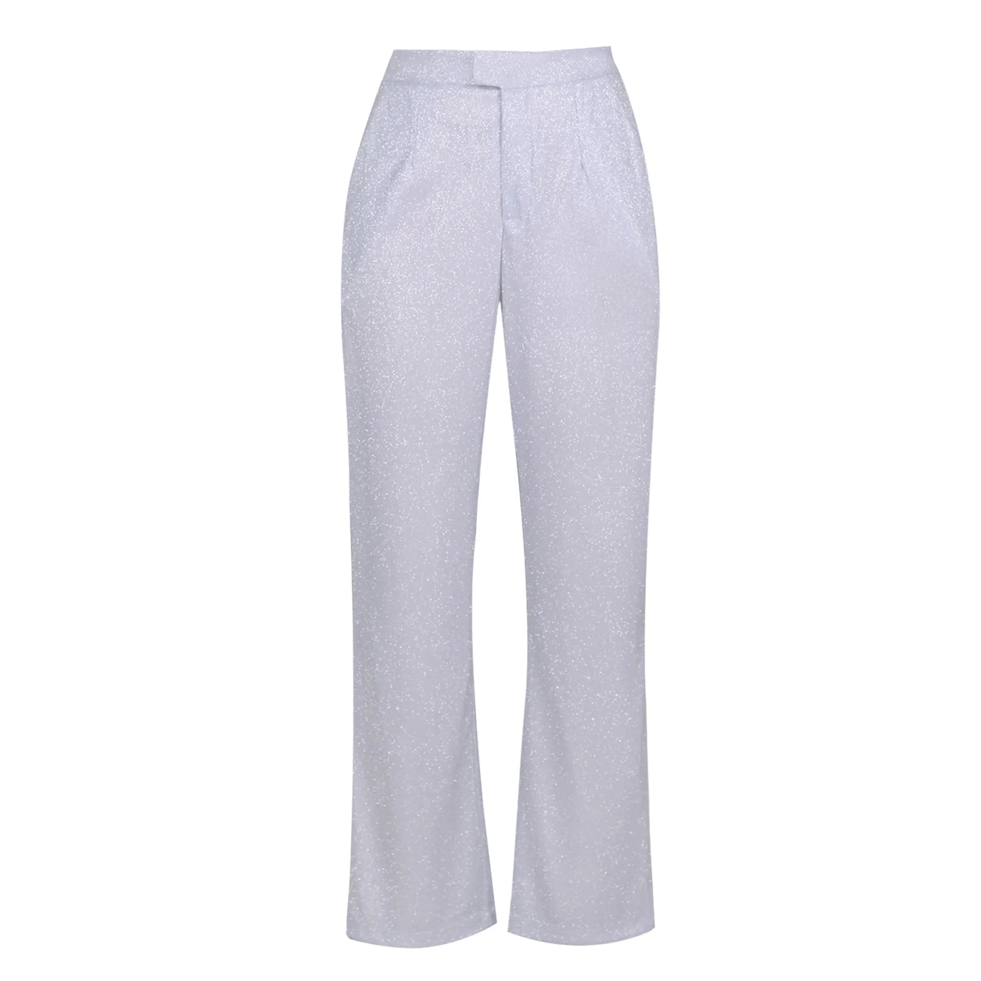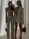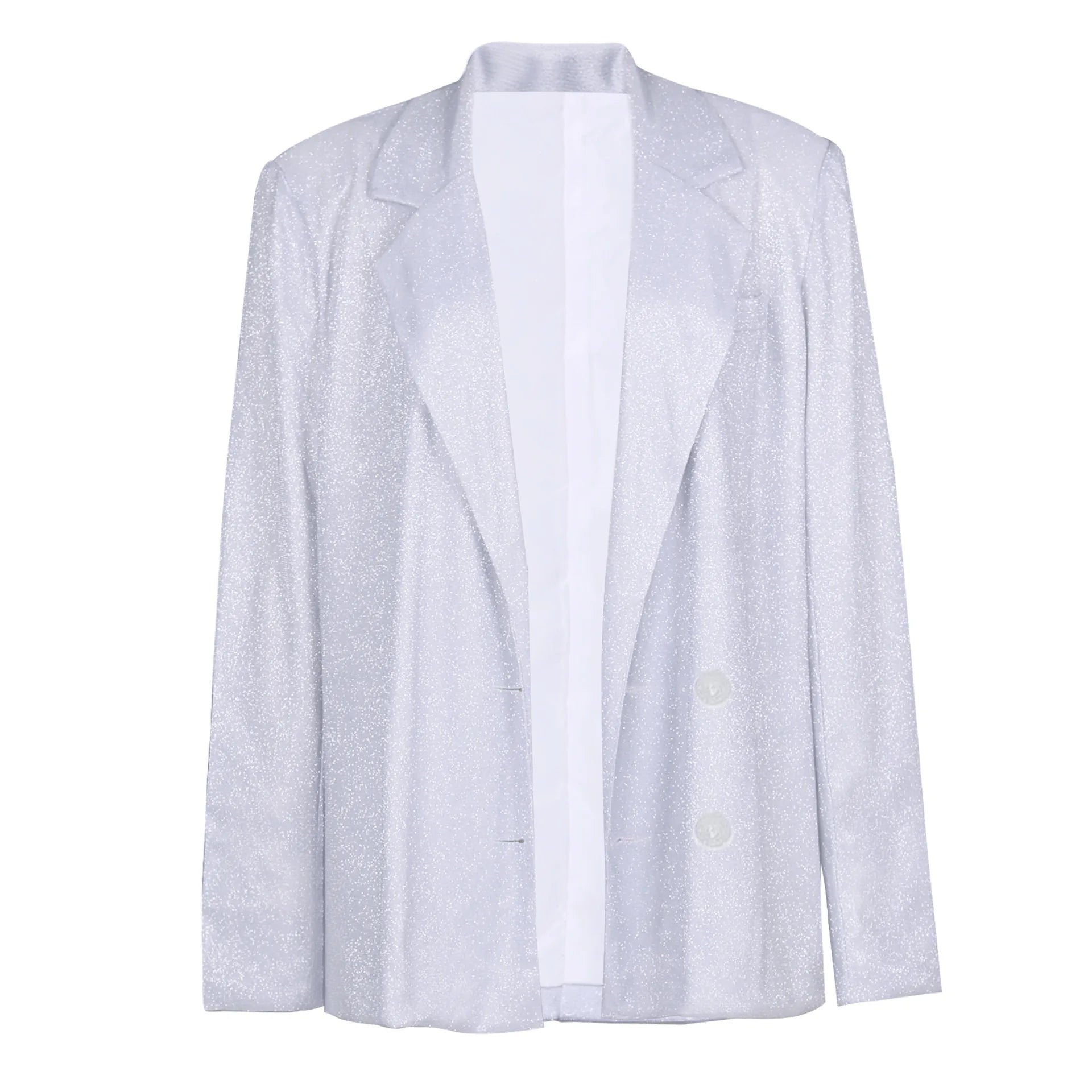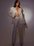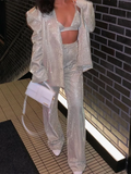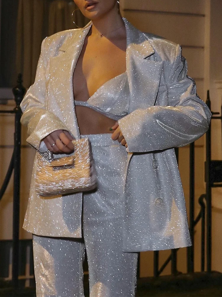 Ensemble blazer sexy à paillettes argentées et manches longues pour femme, pantalon décontracté et lumineux, soutien-gorge, mode streetwear