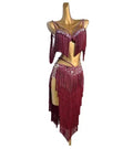 Belly Dance Competition Women's High-end Custom Lenses Multi-layer Tassel Cha Samba Performance Rhinestone Dress