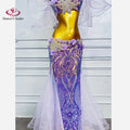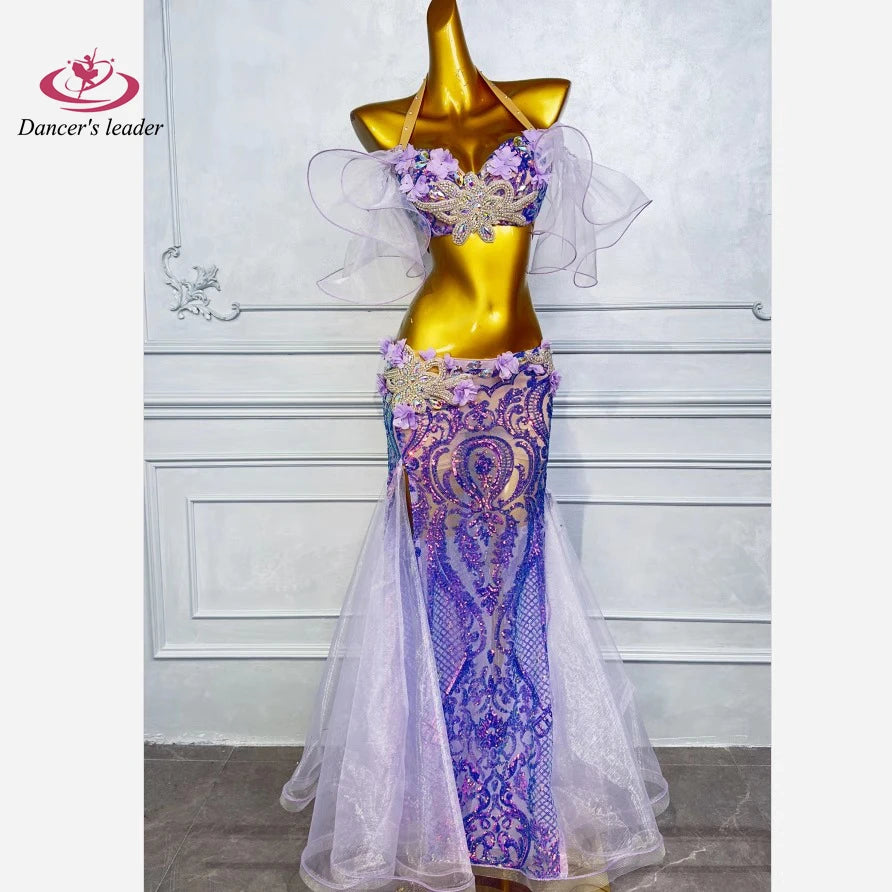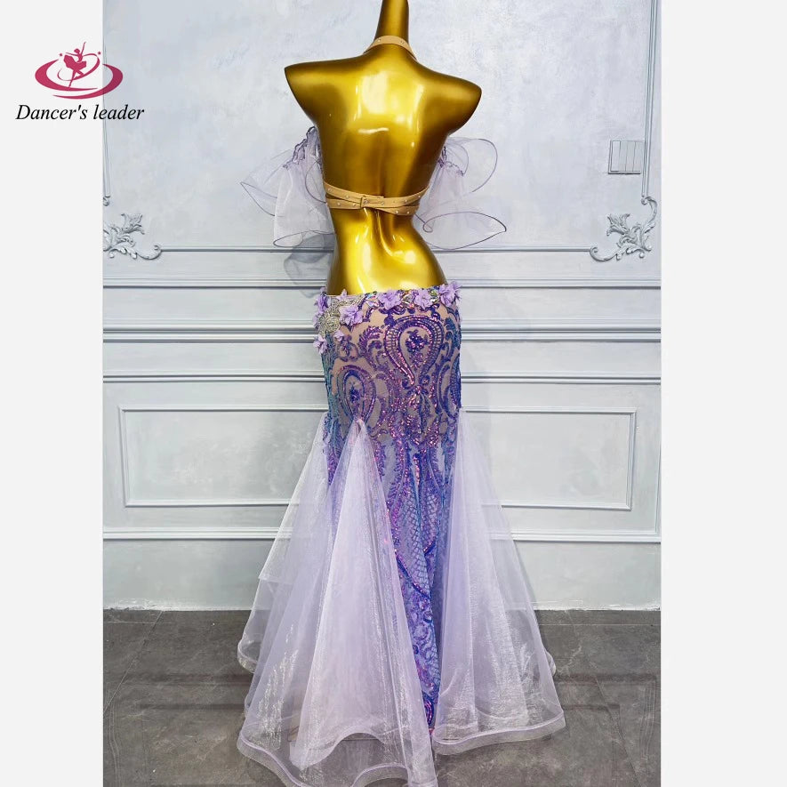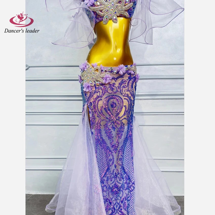 Belly Dance Professional Dress High-end Purple Flower Tulle with Diamond Female Adult Stage Professional Clothing