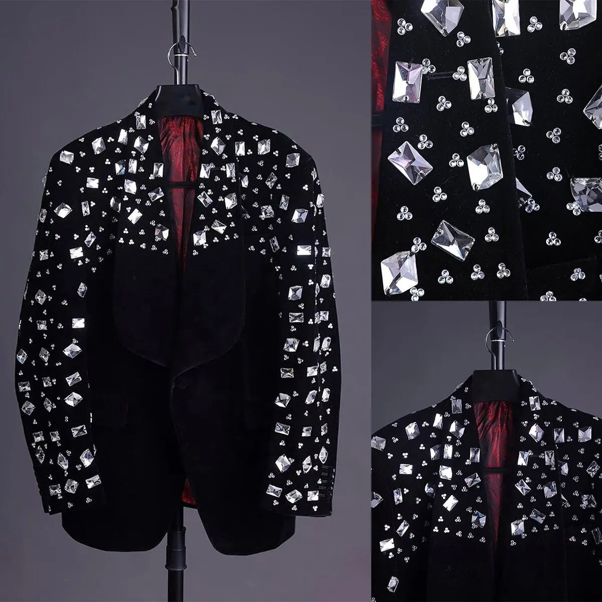 Elevate your presence with this Big Crystal Men Wedding Tuxedo — a striking one-piece jacket outfit designed for grooms, prom kings, birthday VIPs, and anyone wanting an unforgettable entrance. Combining bold crystal beading with expert tailoring, this jacket balances theatrical sparkle and refined structure for a confident, camera-ready look.