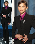 Costume blazer noir de célébrité Street Power Slim Fit épaulettes tenue de soirée tenue de mariage 2 pièces