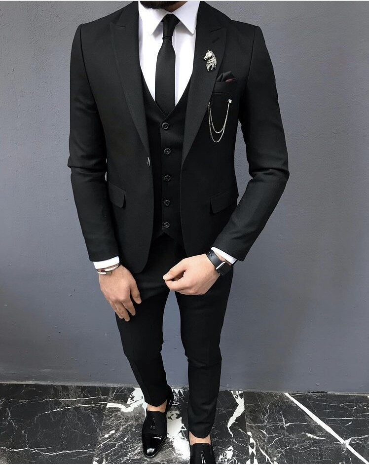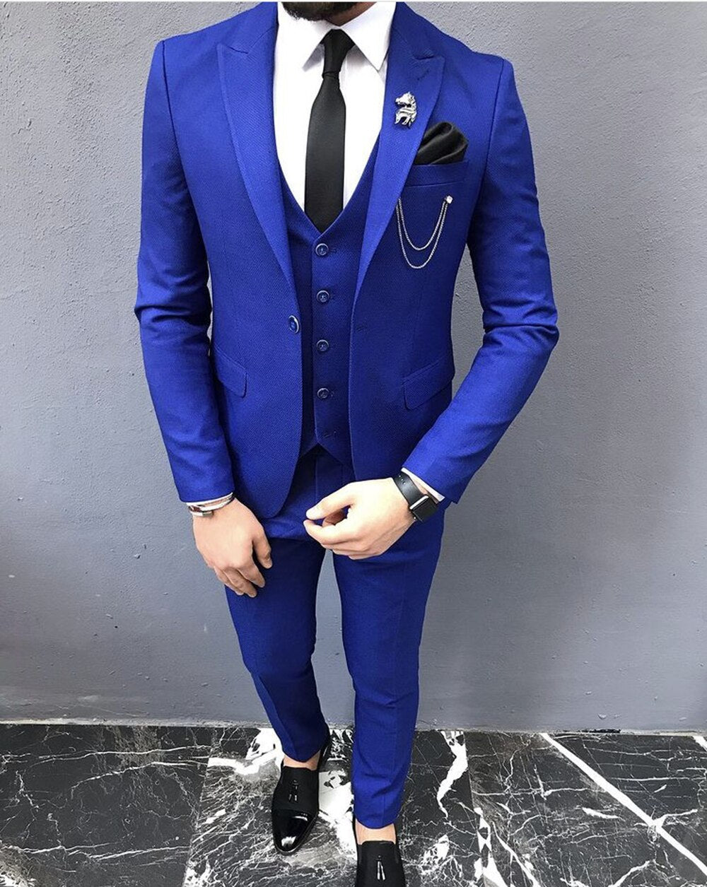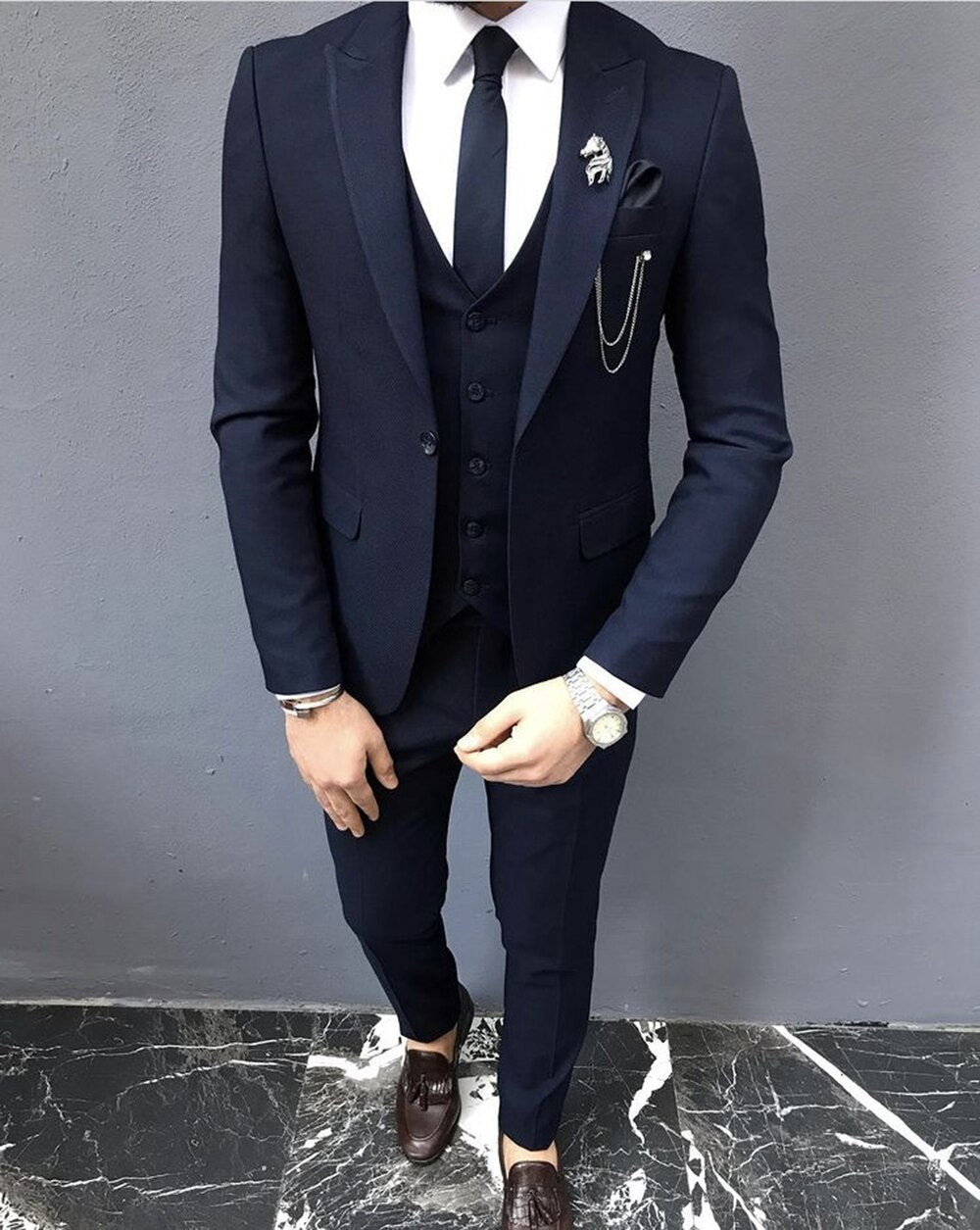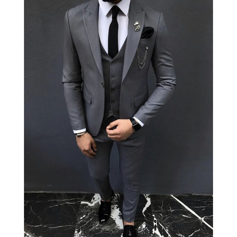 Costume classique 3 pièces pour homme, noir, gris, bleu, coupe slim, smoking de mariage, tenue de soirée, blazer, pantalon, veste d'affaires, gilet et pantalon