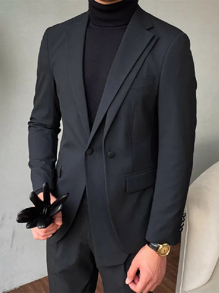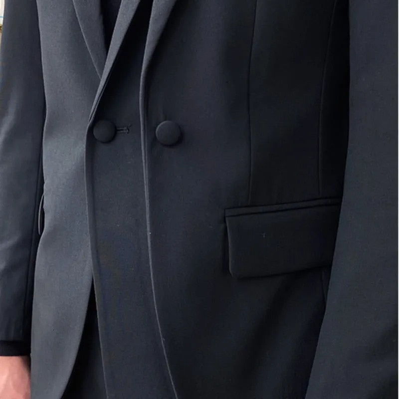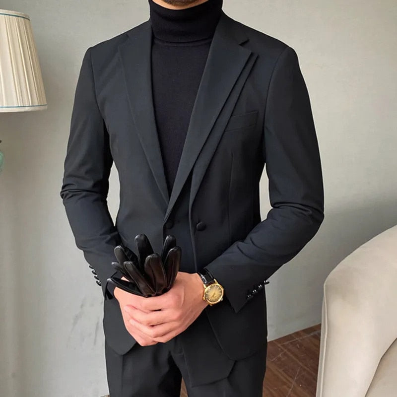 Costume homme noir 2 pièces blazer pantalon un bouton revers pointu affaires formel coupe slim mariage marié costume sur mesure homme
