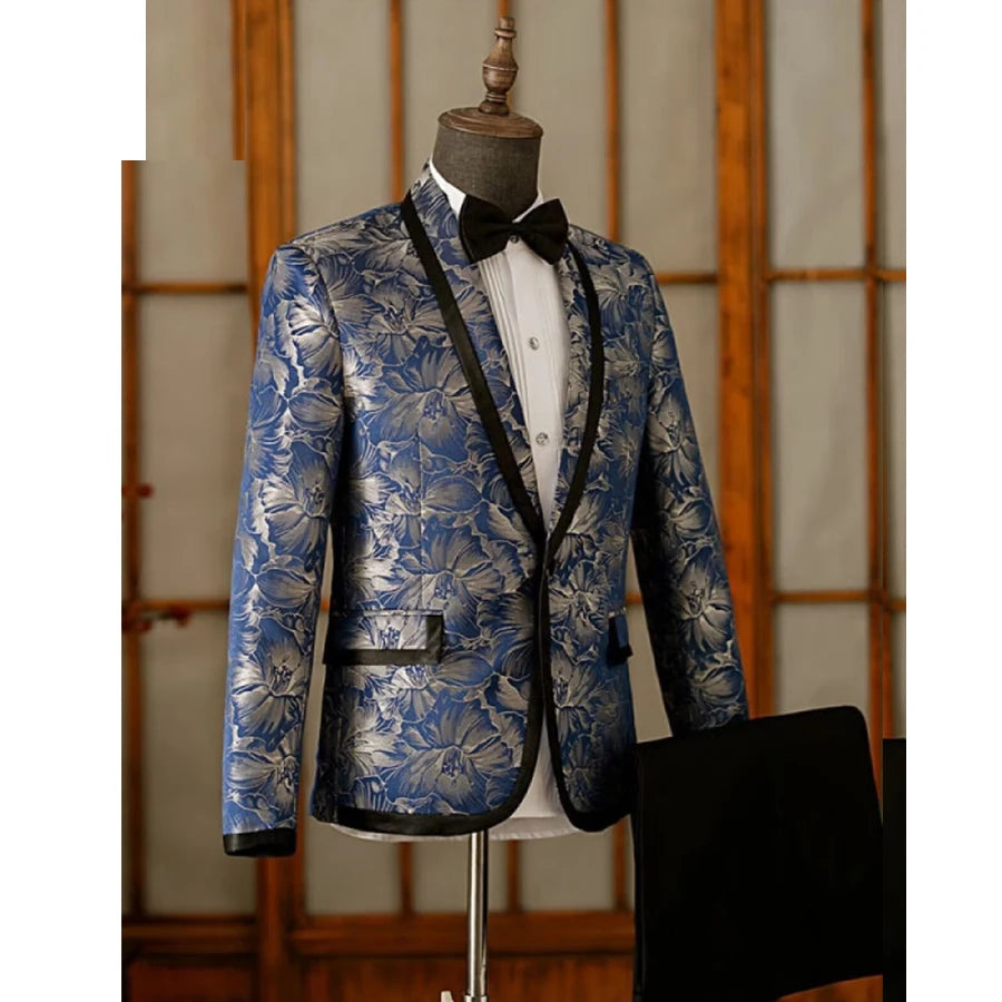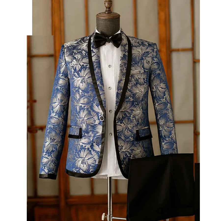 Costume blazer fleuri élégant pour homme - Ensemble smoking de mariage 2 pièces sur mesure avec pantalon et veste élégants