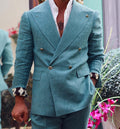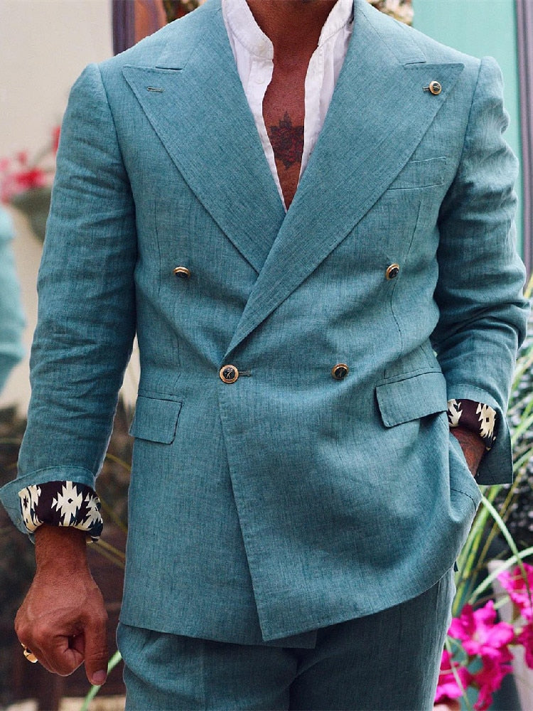 Costume bleu pour homme, 2 pièces, blazer et pantalon, un bouton, revers en pointe, en lin, formel, affaires, slim, formel, mariage, marié, costume homme