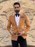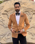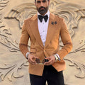 Costume marron 2 pièces pour homme, blazer en velours, pantalon noir, un bouton, revers en pointe, smoking, costume de mariage moderne pour homme