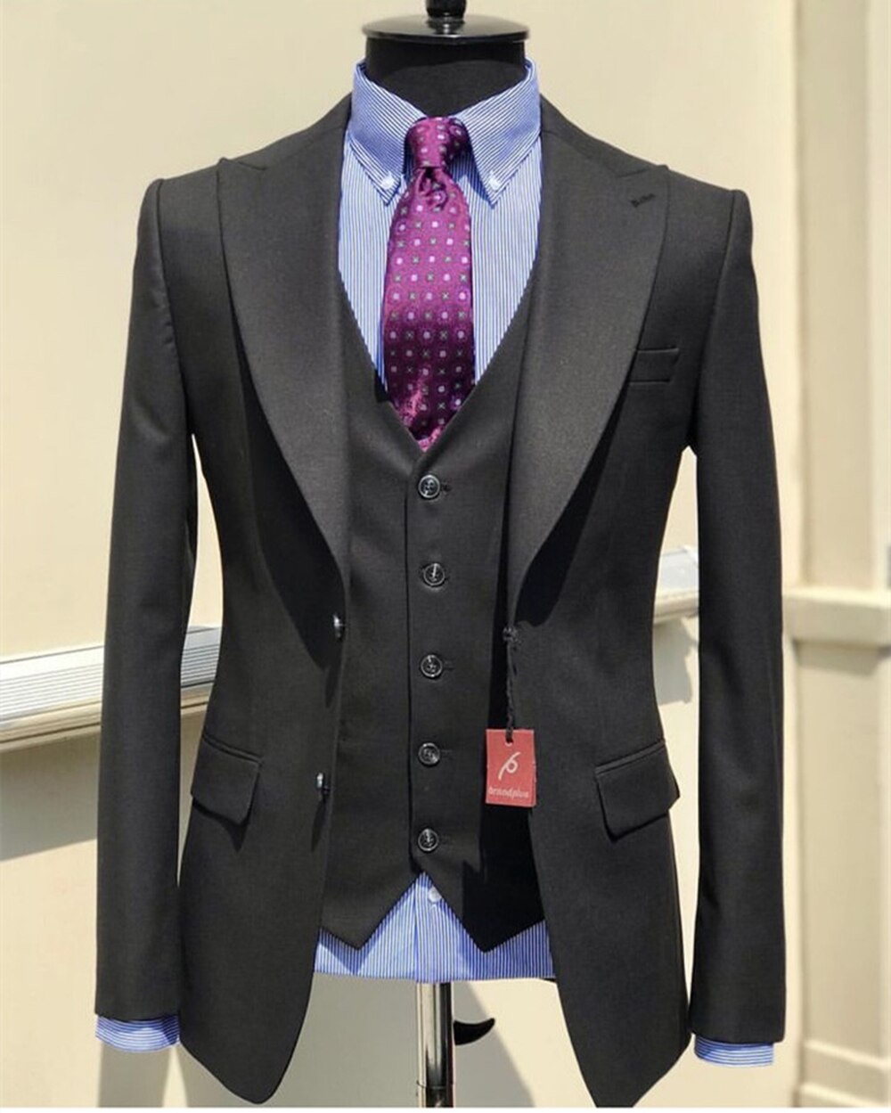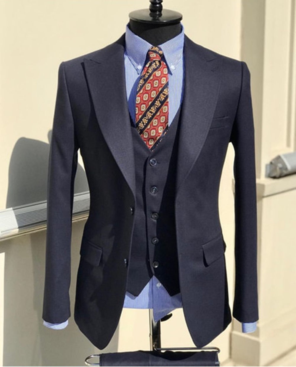 Costume 3 pièces pour homme, bleu marine, noir, slim, pour mariage, bal de promo, blazer, pantalon, veste, gilet