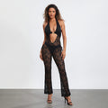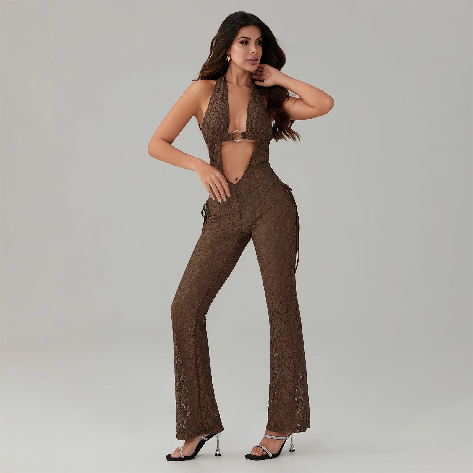 Turn up the heat this summer with our Y2K-inspired Lace-up Halter Jumpsuit. Featuring a daring deep V-neck, backless design, and trendy side-tied cutout details, this sleeveless romper hugs your curves with a slim fit and flares at the legs for a bold, retro vibe. Whether you’re headed to a festival, party, or summer night out, this head-turning jumpsuit is perfect for making a statement in true Y2K fashion.