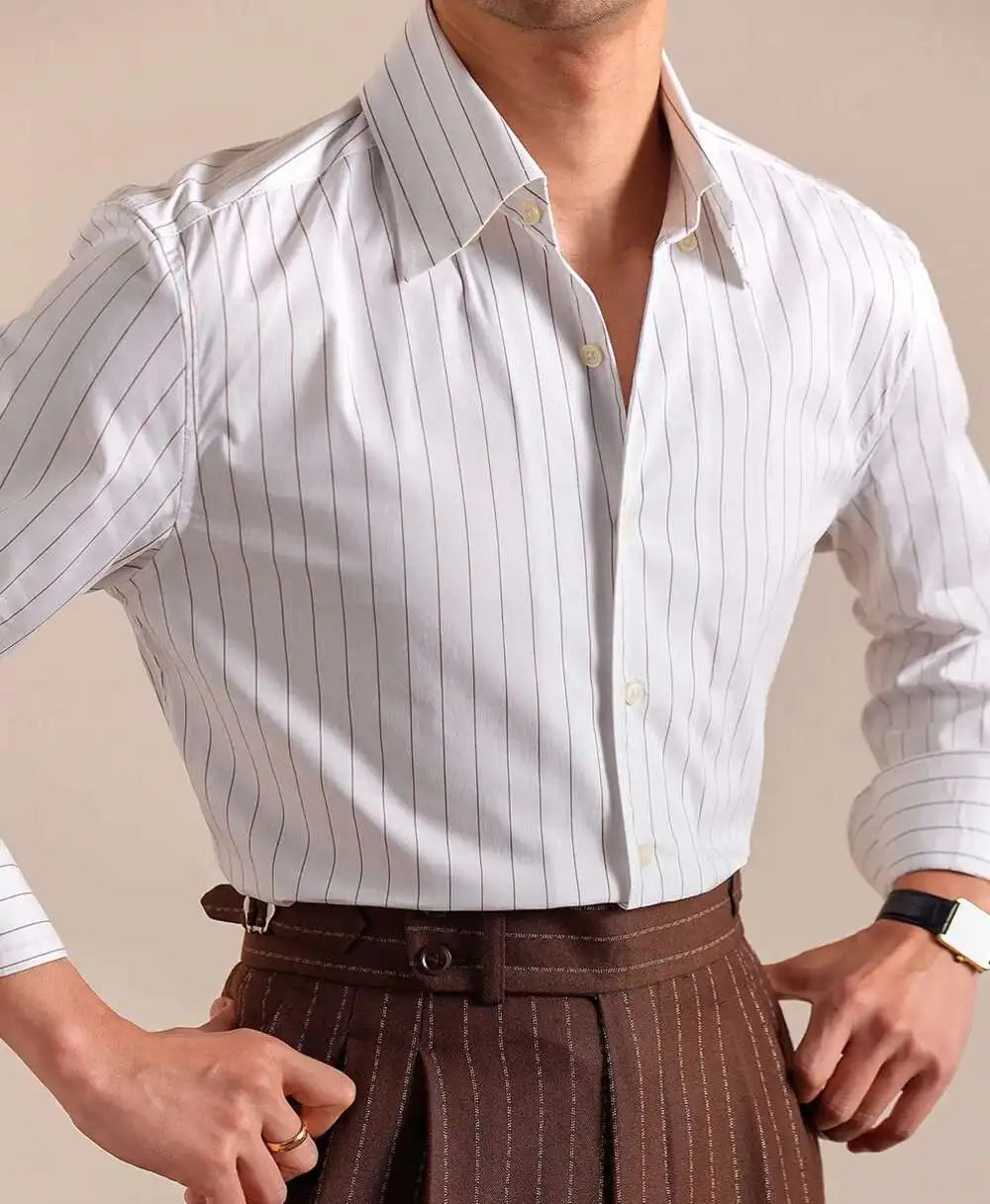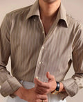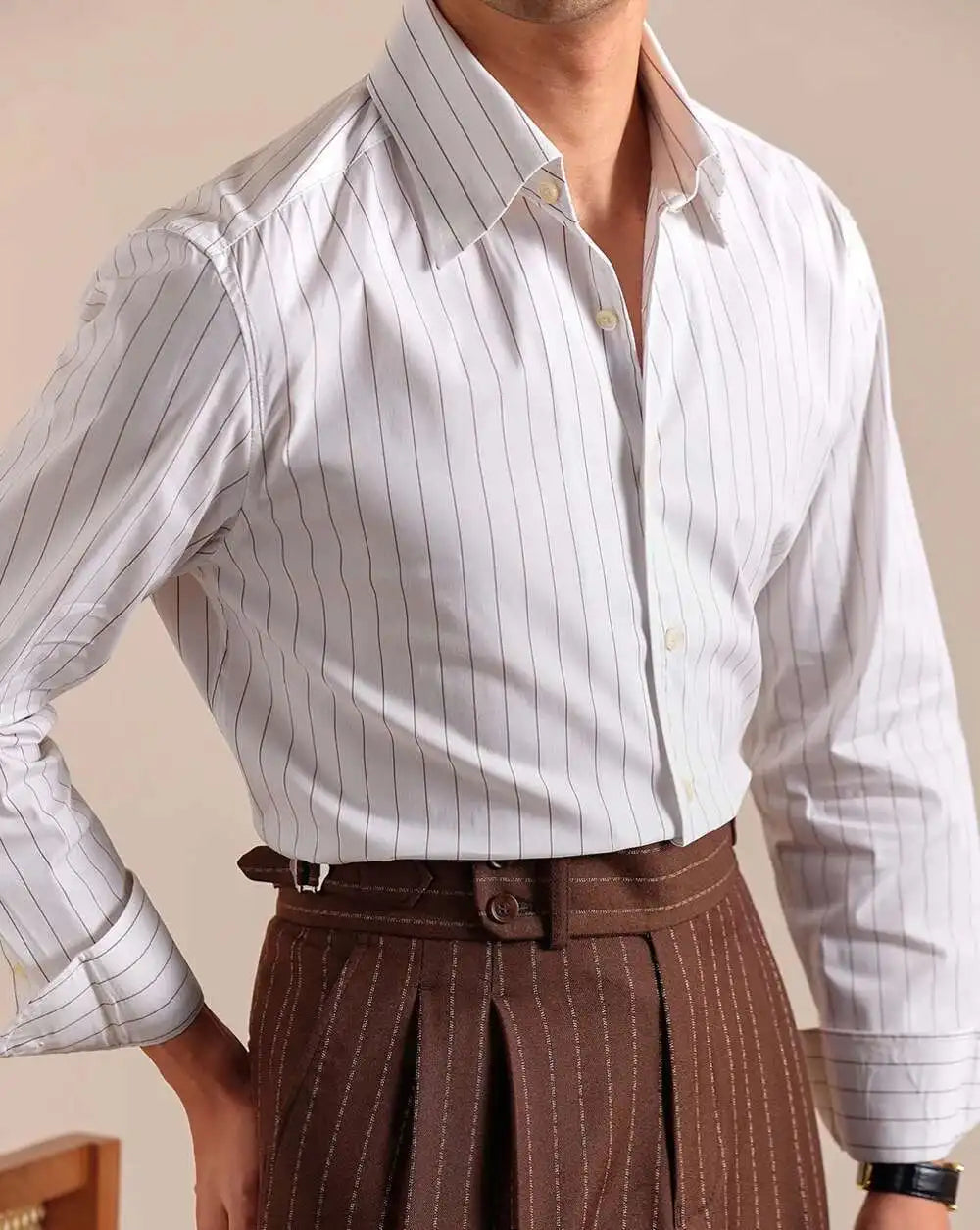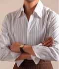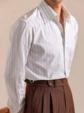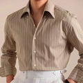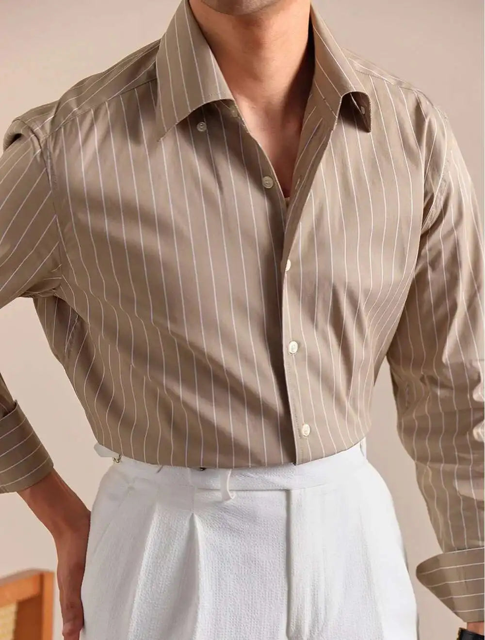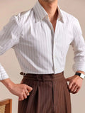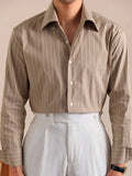 Cotton Blend Striped Casual Italian Style One Piece Collar Long Sleeved Shirt Men High Count Cotton Gentleman Business Shirt Men