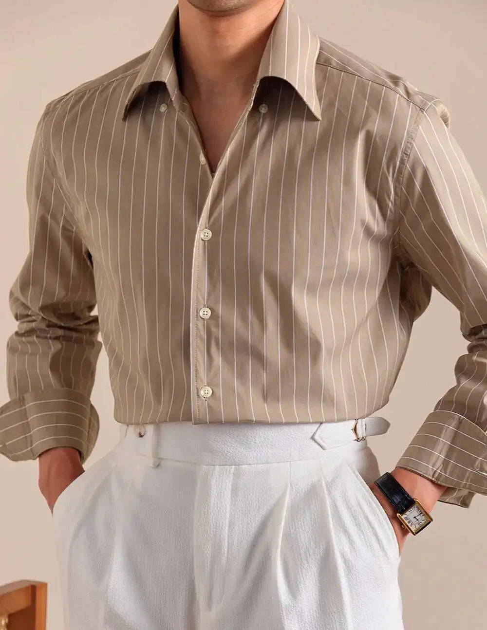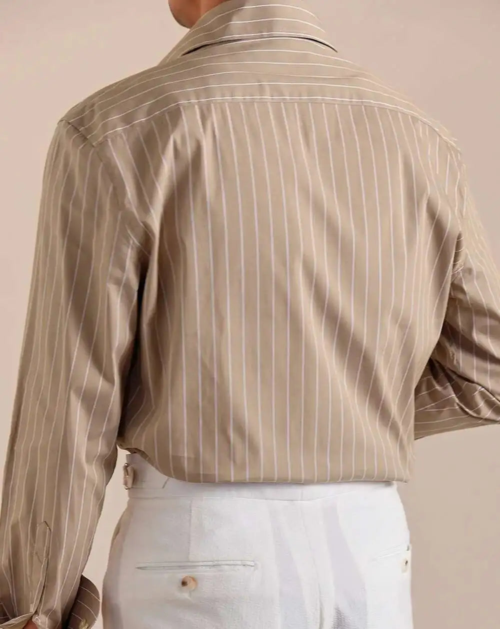 Introduce a refined staple to your wardrobe with the Cotton Blend Striped Casual Italian Style One Piece Collar Long Sleeved Shirt. Crafted for the modern gentleman who values both comfort and sophistication, this shirt blends classic tailoring with contemporary design details to create a versatile piece suitable for business, travel, and smart-casual occasions.