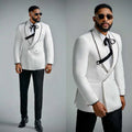 Designer Beaded Wedding Suits for Groom Shawl Lapel Tuxedos Double Breasted 2 Pcs Jacket with Pants Party Prom Customized