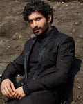 Smoking de mariage noir personnalisé pour homme, coupe slim, avec perles, pour dîner, bal, soirée (veste + pantalon)
