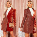 Blazer en velours pailleté pour femme, col en V, soirée, smoking, pour mariage
