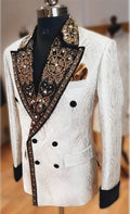 Fashion Appliques Men Suits Jacquard 1 Piece Tailor-Made Jacket Only One Blazer Embroidery Double Breasted Groom Customized Coat