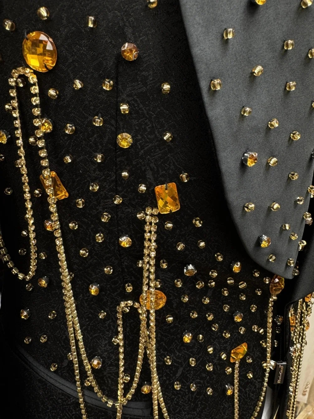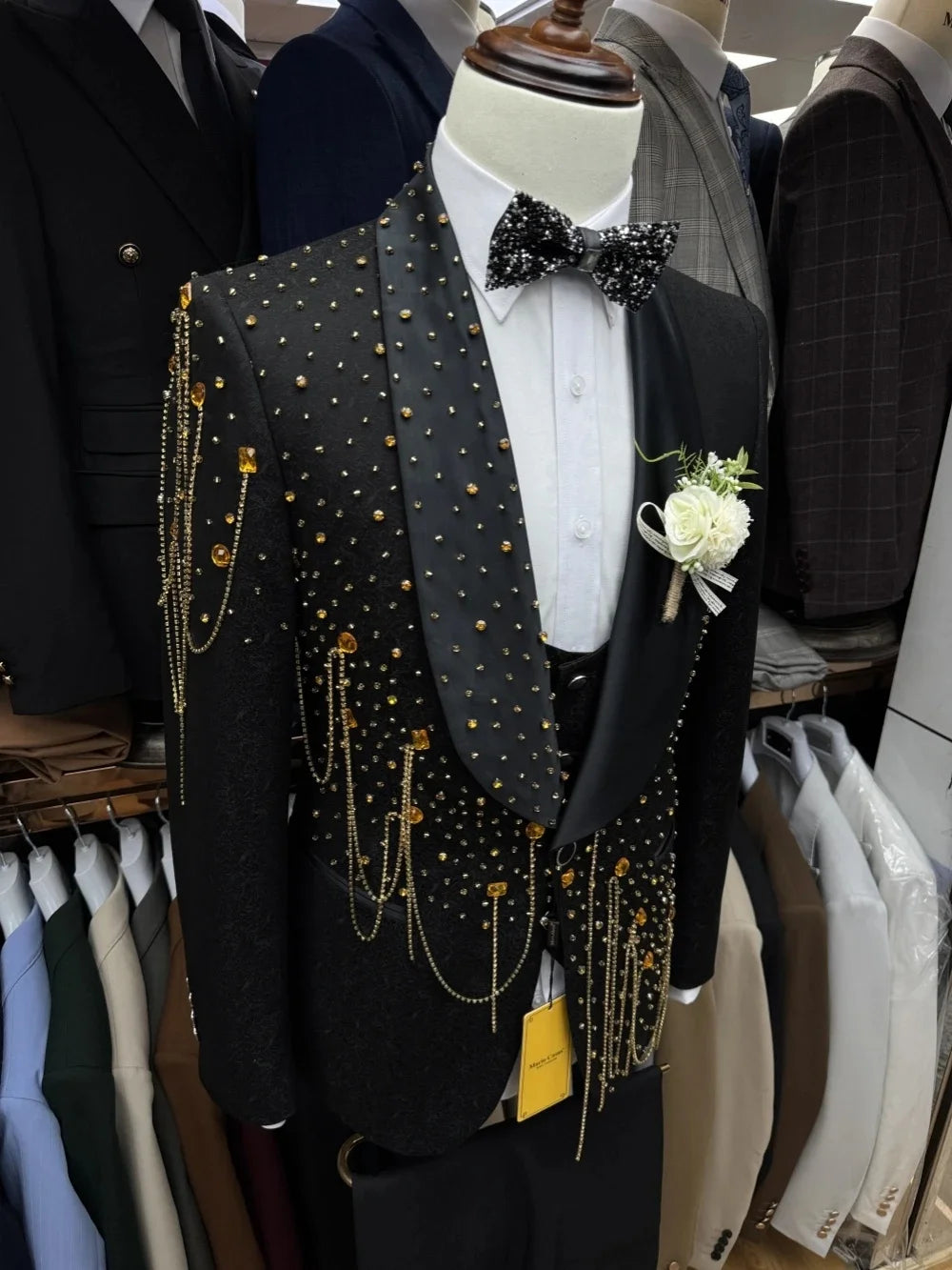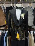 Elevate formal occasions with this Fashion Men’s Suit — a tailor-made, two-piece ensemble that blends luxe jacquard texture with refined rhinestone detailing and contemporary accents. Designed for men who appreciate sartorial flair, the set pairs a one-button shawl-lapel jacket with matching trousers, fully customizable to your measurements and preferred finish.