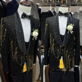 Fashion Men Suits Rhinestone Tailor-Made 2 Pieces Jacquard Shawl Lapel Jacket Tassel Blazer One Button Customized Coat Pants