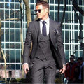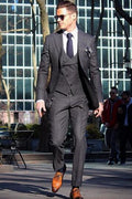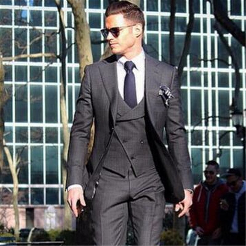 Costume 3 pièces gris pour homme, veste, pantalon, gilet et cravate, coupe slim, pour marié, soirée