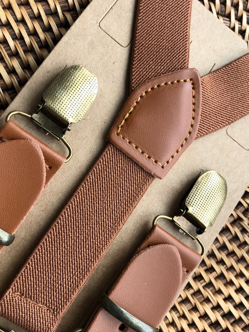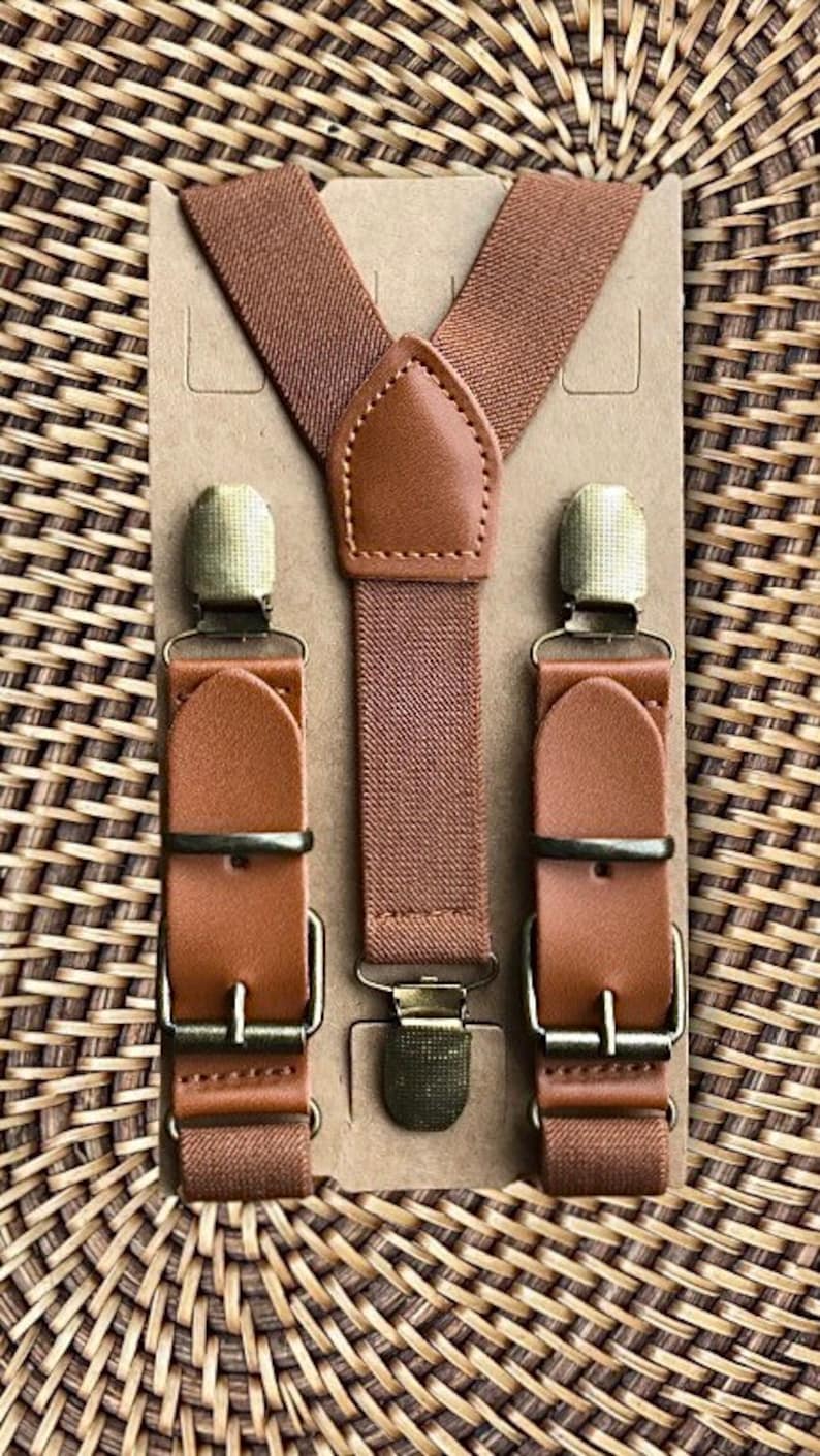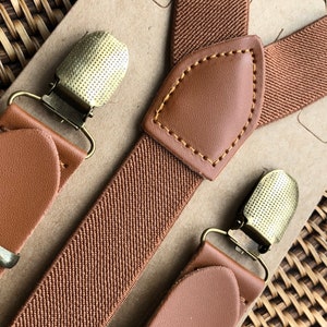 Bretelles en cuir marron cognac pour garçons d'honneur, tenues rustiques pour porteurs d'alliances, bretelles pour hommes et garçons, bretelles marron pour femmes