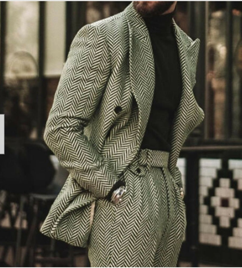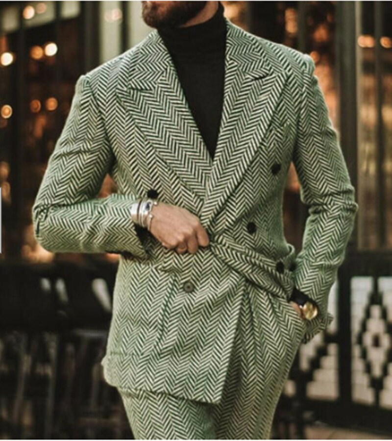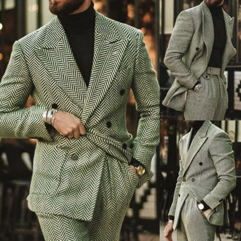 Costume homme à chevrons, coupe slim, 2 pièces, mélange de laine, croisé, smoking, formel, sur mesure, pour affaires, mariage, bal, quotidien