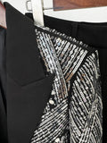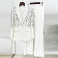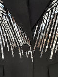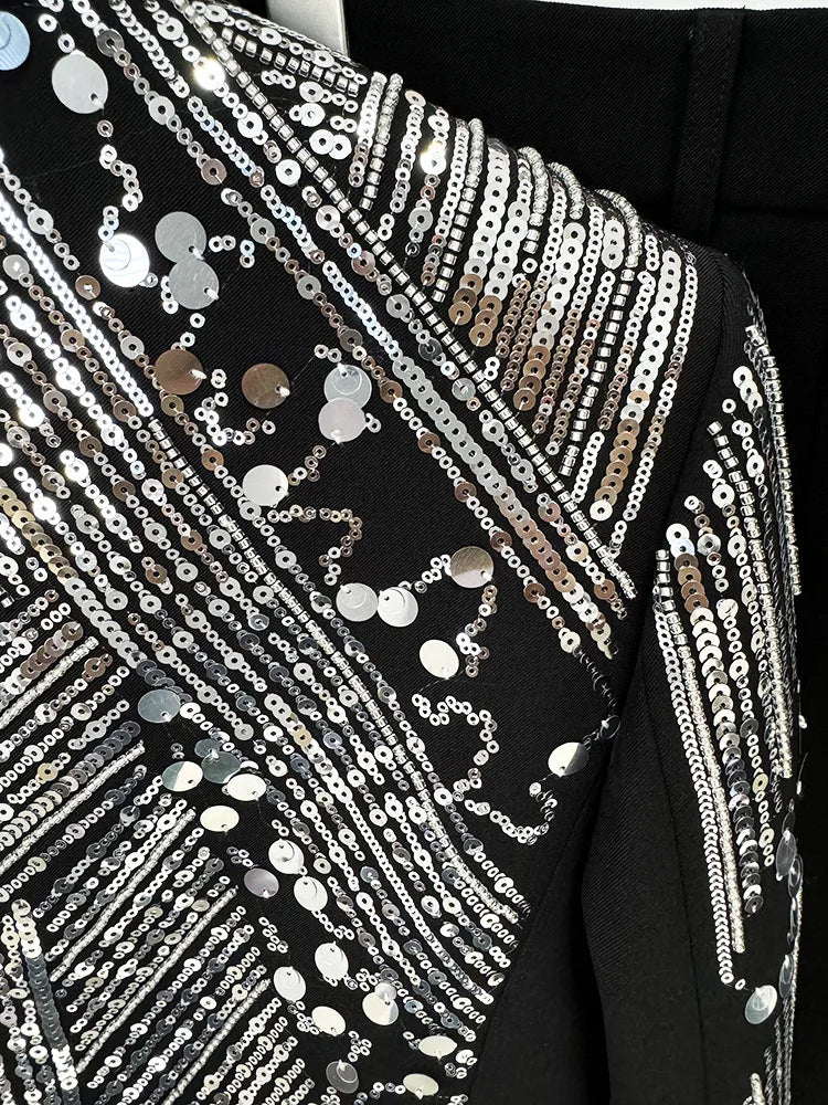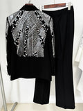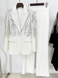 Ensemble pantalon et blazer à paillettes et broderies de perles blanches pour femme, tenue 2 pièces, noir