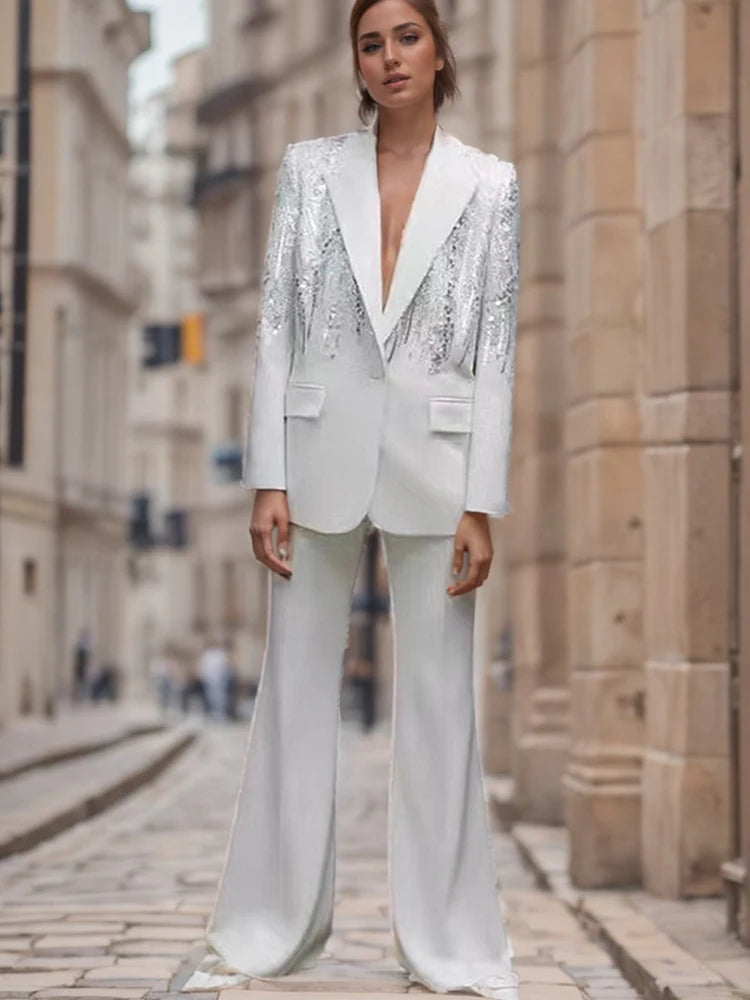 Rayonnez d'élégance avec cet ensemble deux pièces pour femme, composé d'un blazer ajusté et d'un pantalon assorti orné de magnifiques broderies perlées et de paillettes scintillantes. Disponible en noir éclatant ou en blanc immaculé, ce tailleur chic est parfait pour les grandes occasions, les événements formels ou pour faire sensation au bureau. Découvrez l'alliance parfaite de sophistication et d'éclat avec ce tailleur élégant conçu pour les femmes modernes.