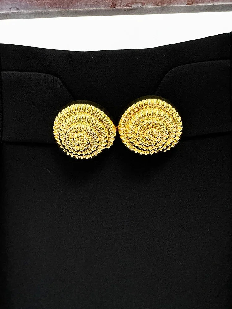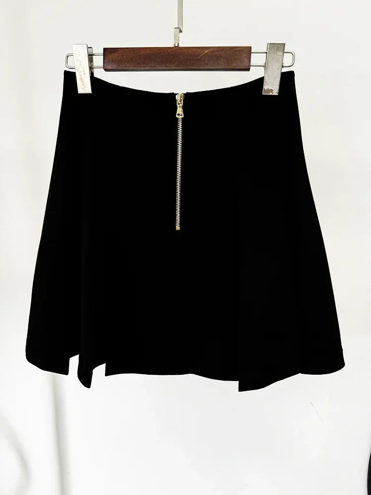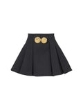 Stylish Designer Women Large Metal Buckle Decoration Pleated Mini Skirt