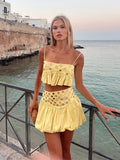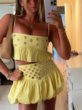 Hollow Out Crop Tank Pleated Skirt Sets Women Ring Bead Strap Sleeveless Backless Vest A-line Skrits Suits Spring Street
