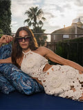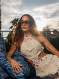 Hook Crochet Flower Long Dresses Women Knitted Halter Sexy Hollow Out Sleeveless Backless Maxi Dress Holiday Fashion Beach Robes