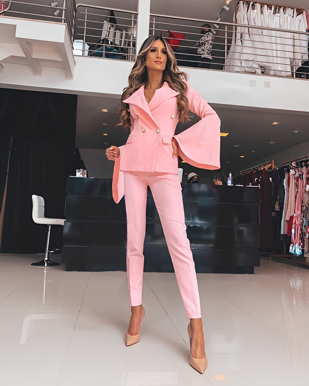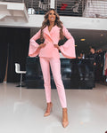 Costume 2 pièces rose vif pour femme, veste et pantalon croisés, tenue de mariage, tenue de soirée, tapis rouge