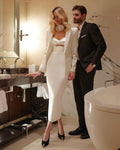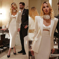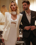 Ensemble 2 pièces ivoire pour femme, taille haute, manches longues, tenue de soirée