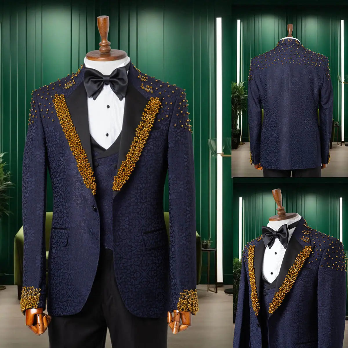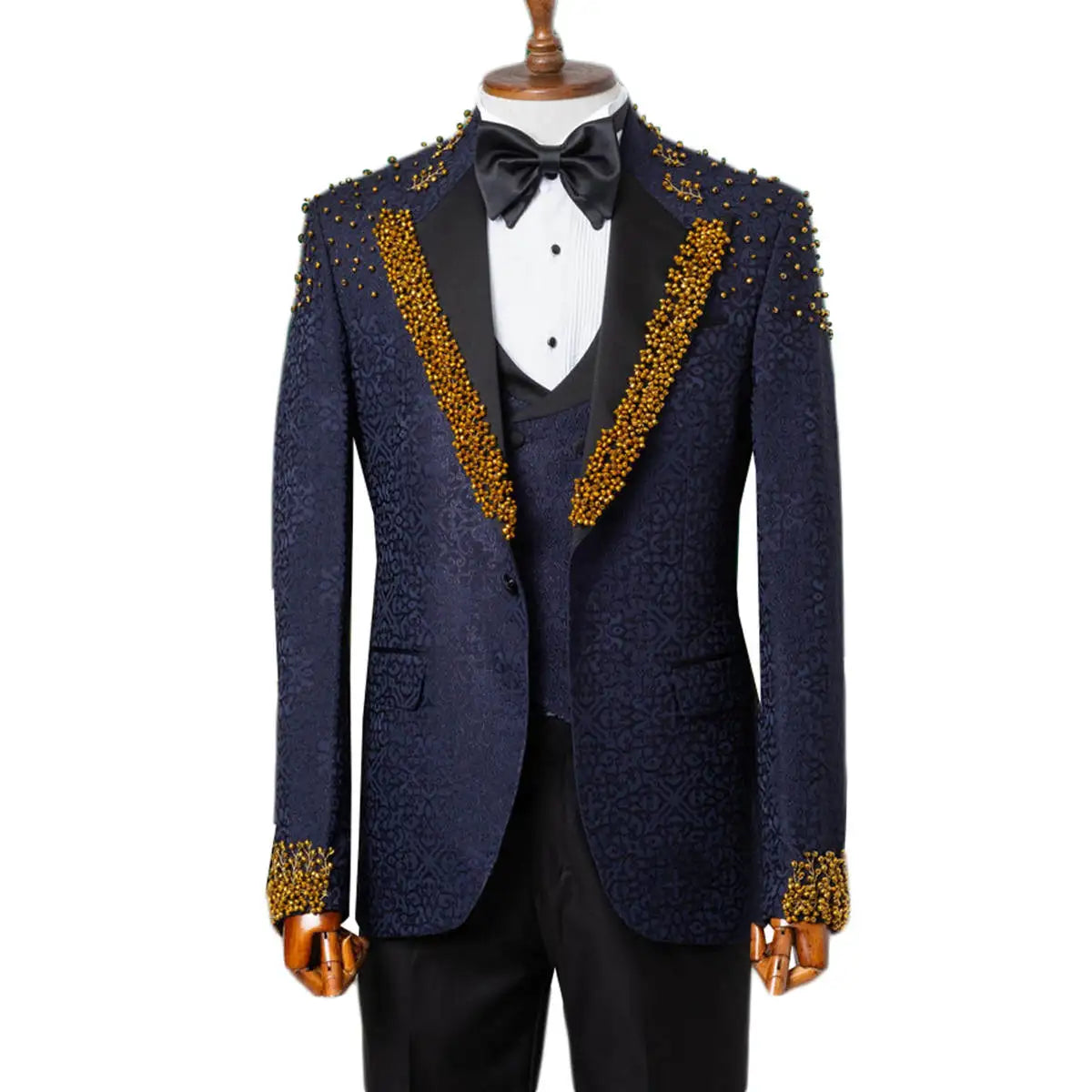 Adoptez l'élégance avec notre costume homme en jacquard, conçu pour les mariés et les garçons d'honneur modernes. Ce costume de mariage trois pièces sur mesure arbore des détails perlés raffinés qui ajoutent une touche de luxe et de sophistication. Conçu pour le confort, ce costume est parfait pour les occasions formelles, vous assurant une allure impeccable tout en vous sentant à l'aise. Que vous marchiez vers l'autel ou que vous participiez à une soirée, ce costume sur mesure fera forte impression. Sublimez votre tenue de cérémonie avec cette option élégante et unique, alliant mode et fonctionnalité.