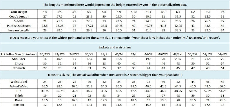 Il est préférable que vous puissiez fournir les tailles personnalisées pour votre commande afin de créer un costume parfaitement ajusté :