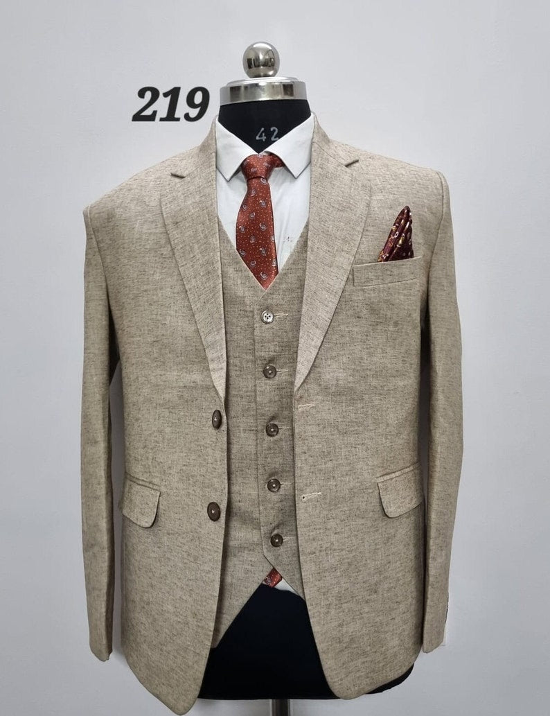 Costume de mariage 3 pièces en lin pour homme, tenue de plage, costume de marié, costume de mariage, costume de bal, manteau et pantalon pour garçons d'honneur, costume d'été