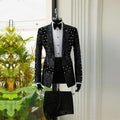 Luxury Jacquard Suits Men For Wedding Crystals Beaded Groom Tuxedos 2 Pieces Formal Banquet Party Man Blazer Sets Traje Hombre