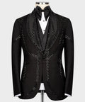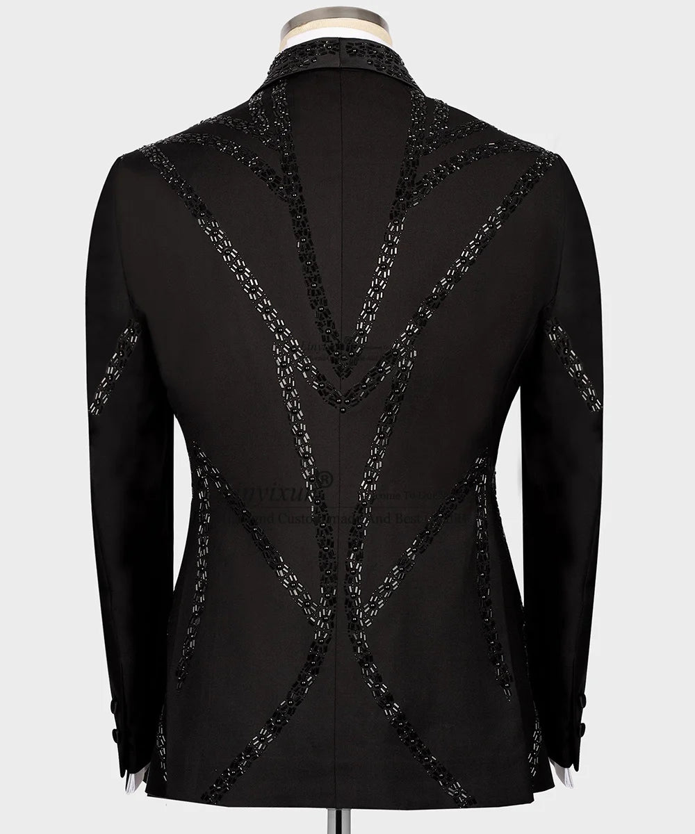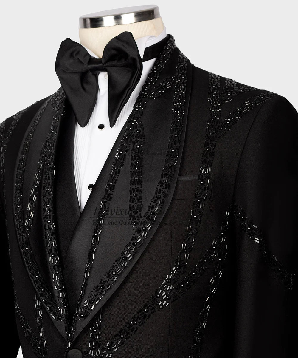 Costume 3 pièces de luxe pour homme, avec ornements métalliques et bijoux, pour mariage, dîner, bal de promo, blazer