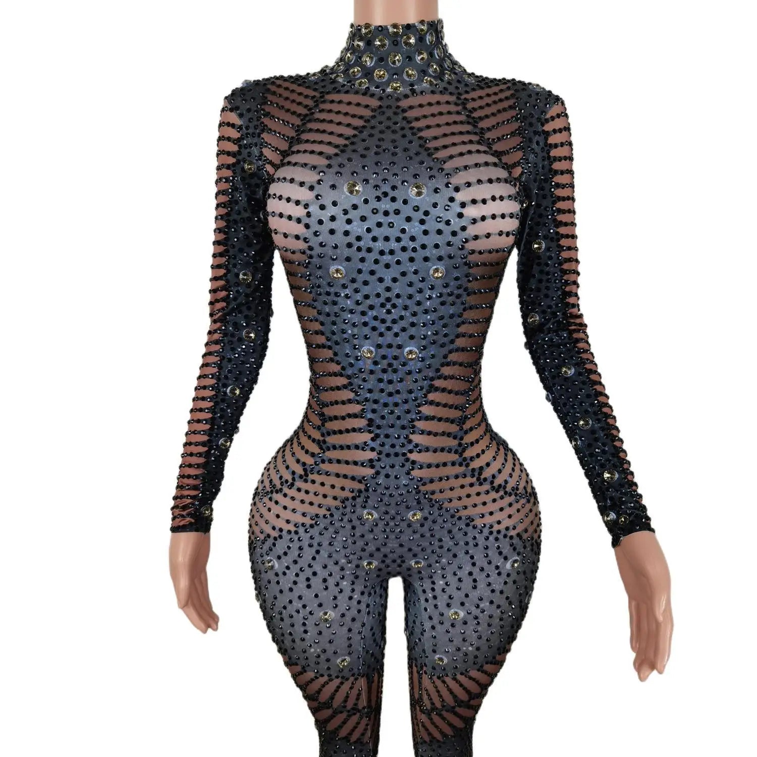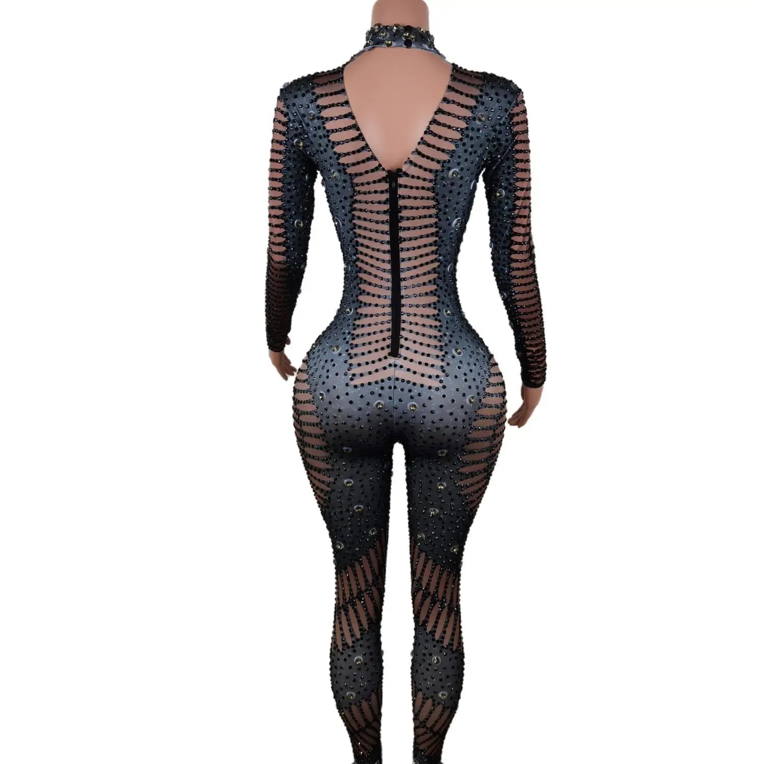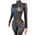 Dazzle the crowd in this luxury long sleeve jumpsuit, adorned with sparkling rhinestones and elegant pearl accents. Designed for women who want to make a bold impression, this sexy clubwear is perfect for parties, birthday celebrations, stage performances, or drag queen shows. The body-hugging silhouette, shimmering details, and couture flair create an unforgettable look for any glamorous event.