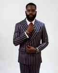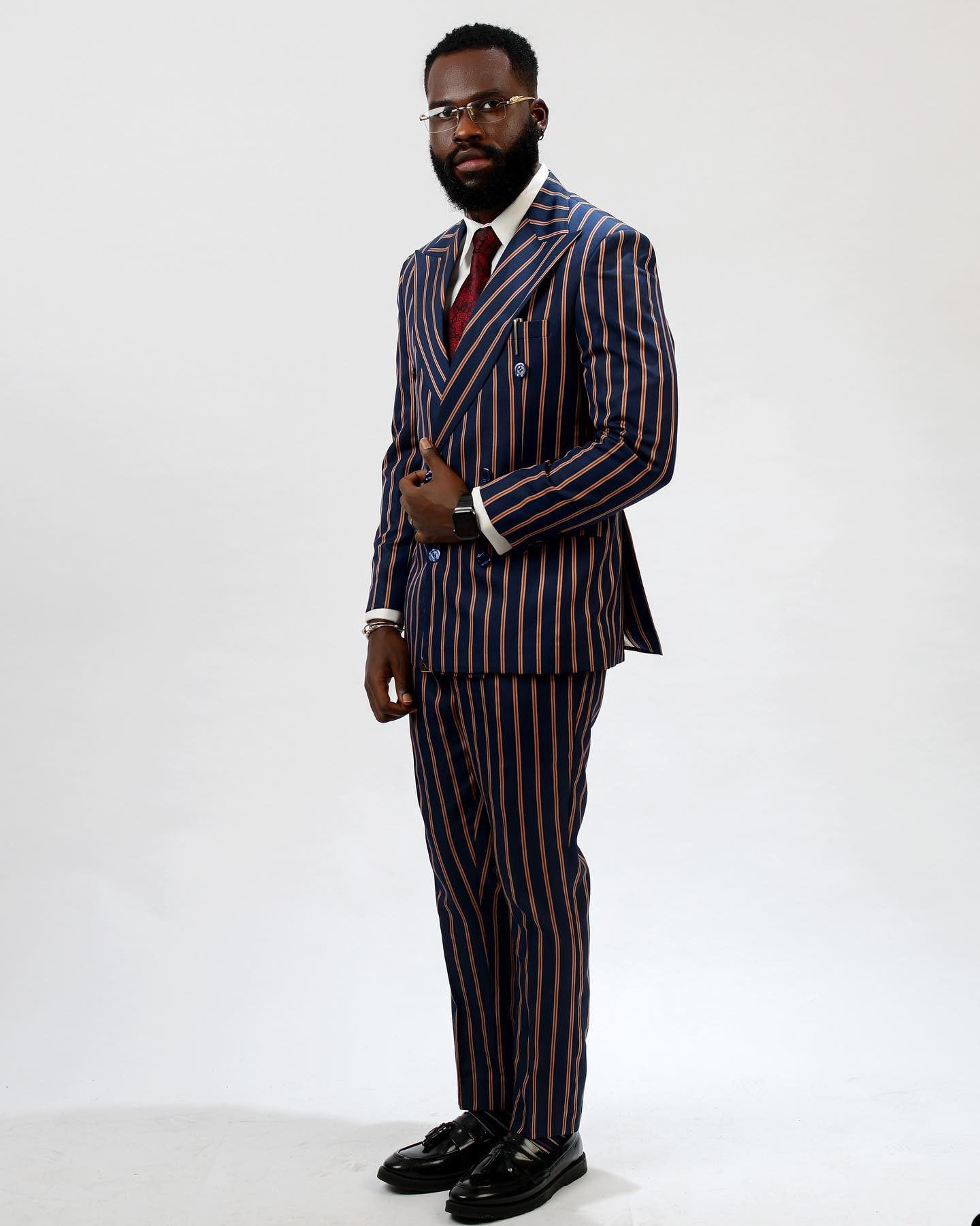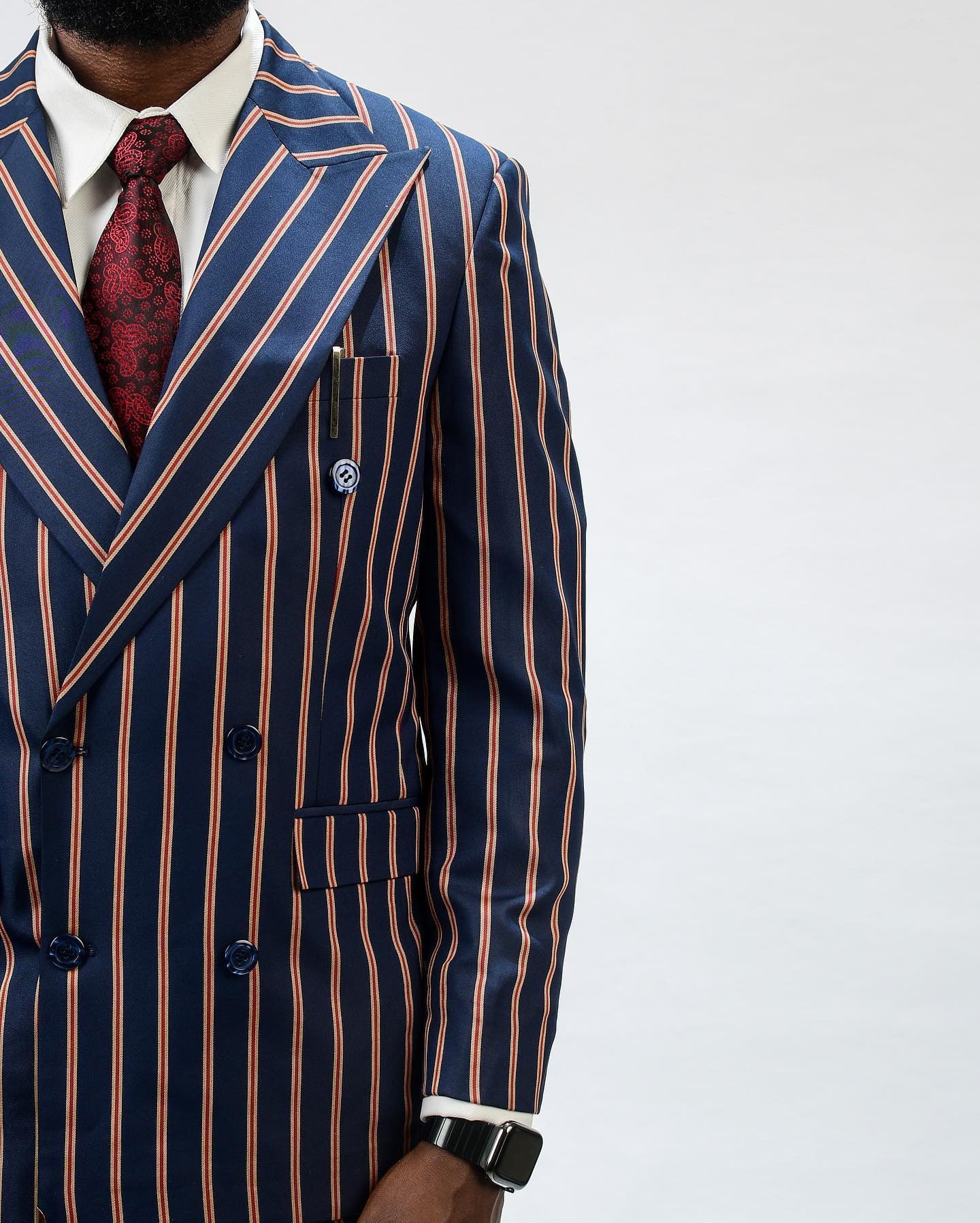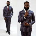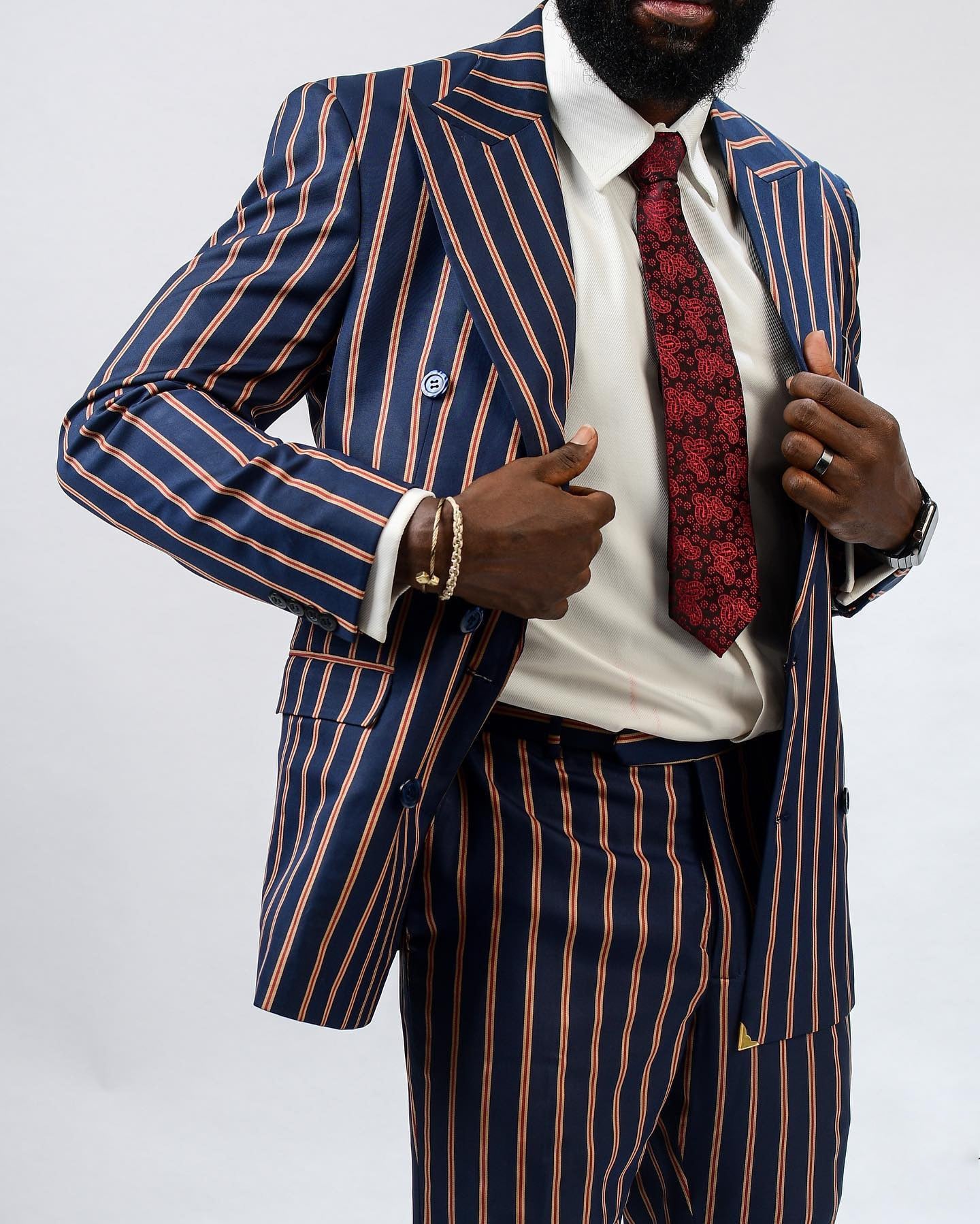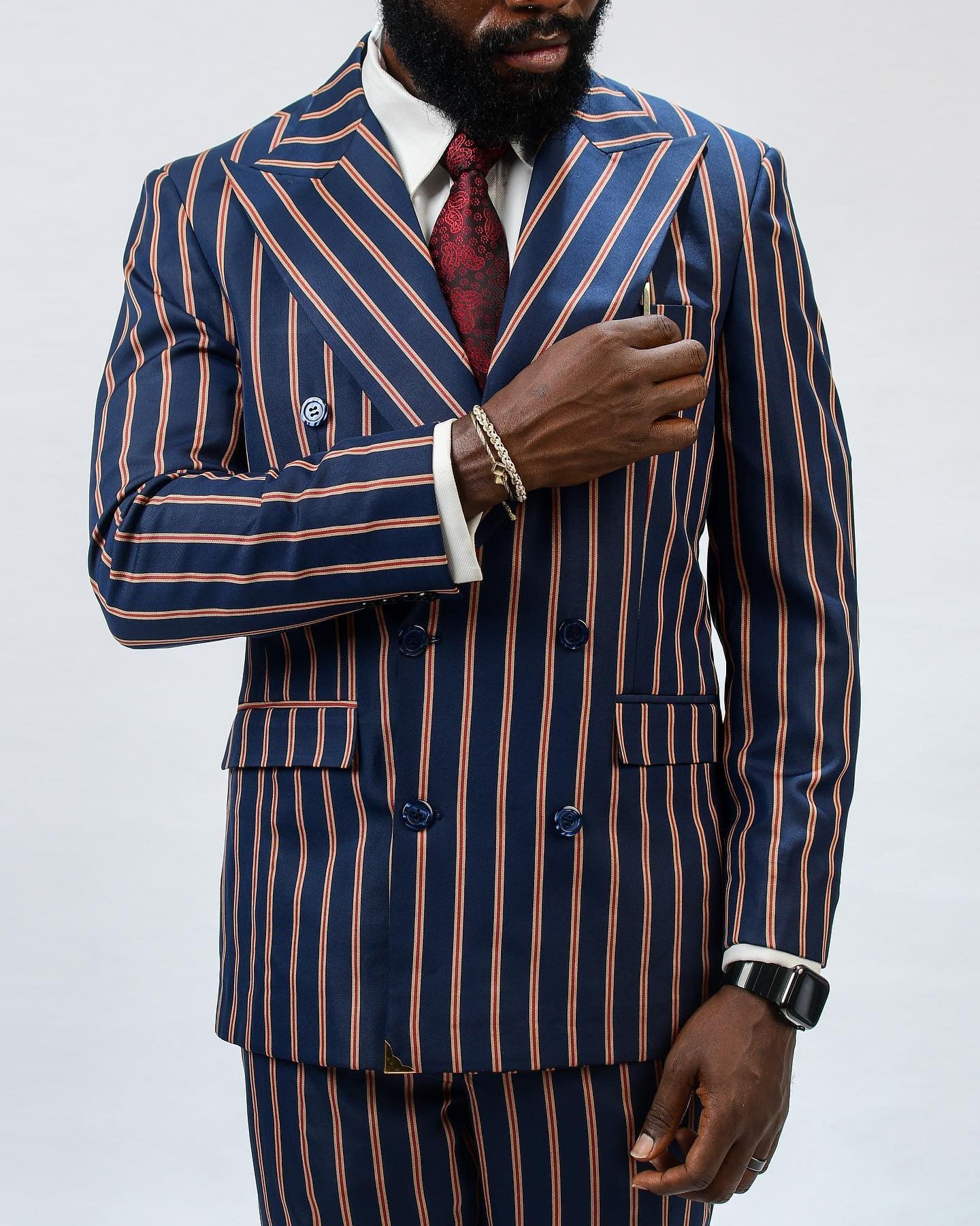 Costume de luxe pour homme, 2 pièces, blazer et pantalon, croisé, revers en pointe, rayures, formel, mariage, marié, sur mesure