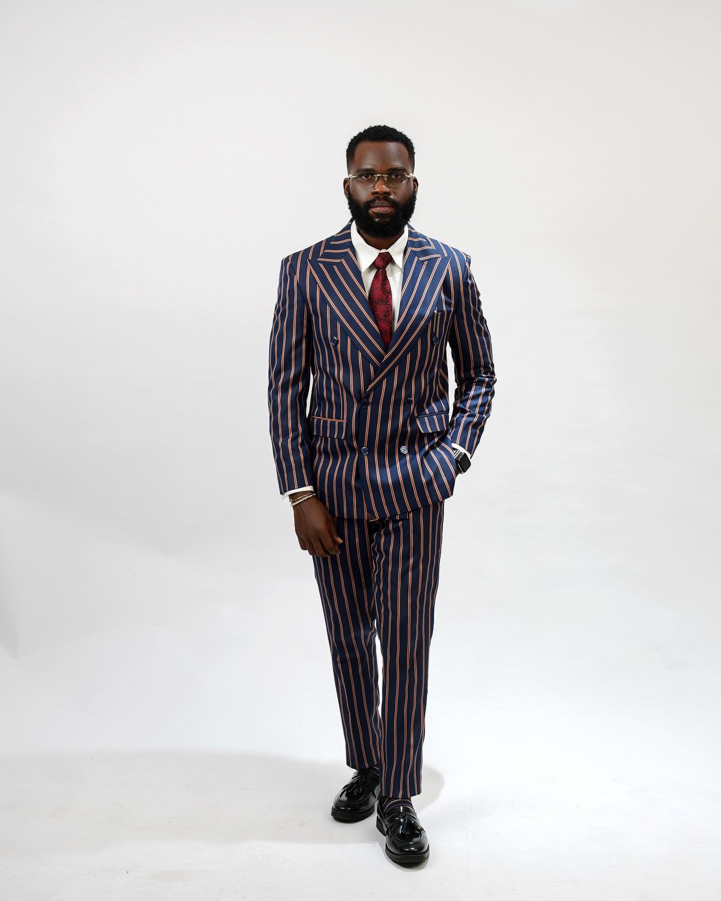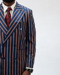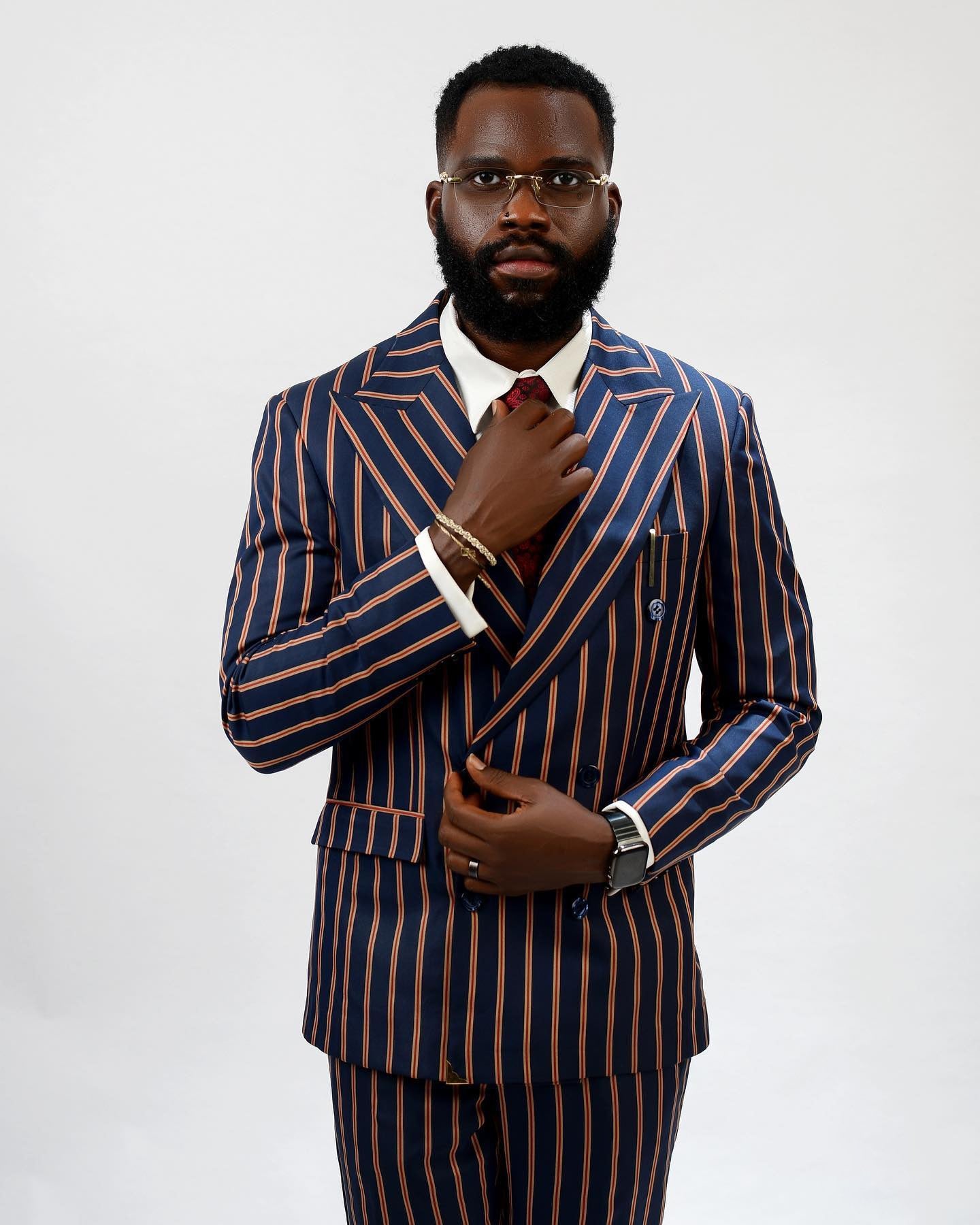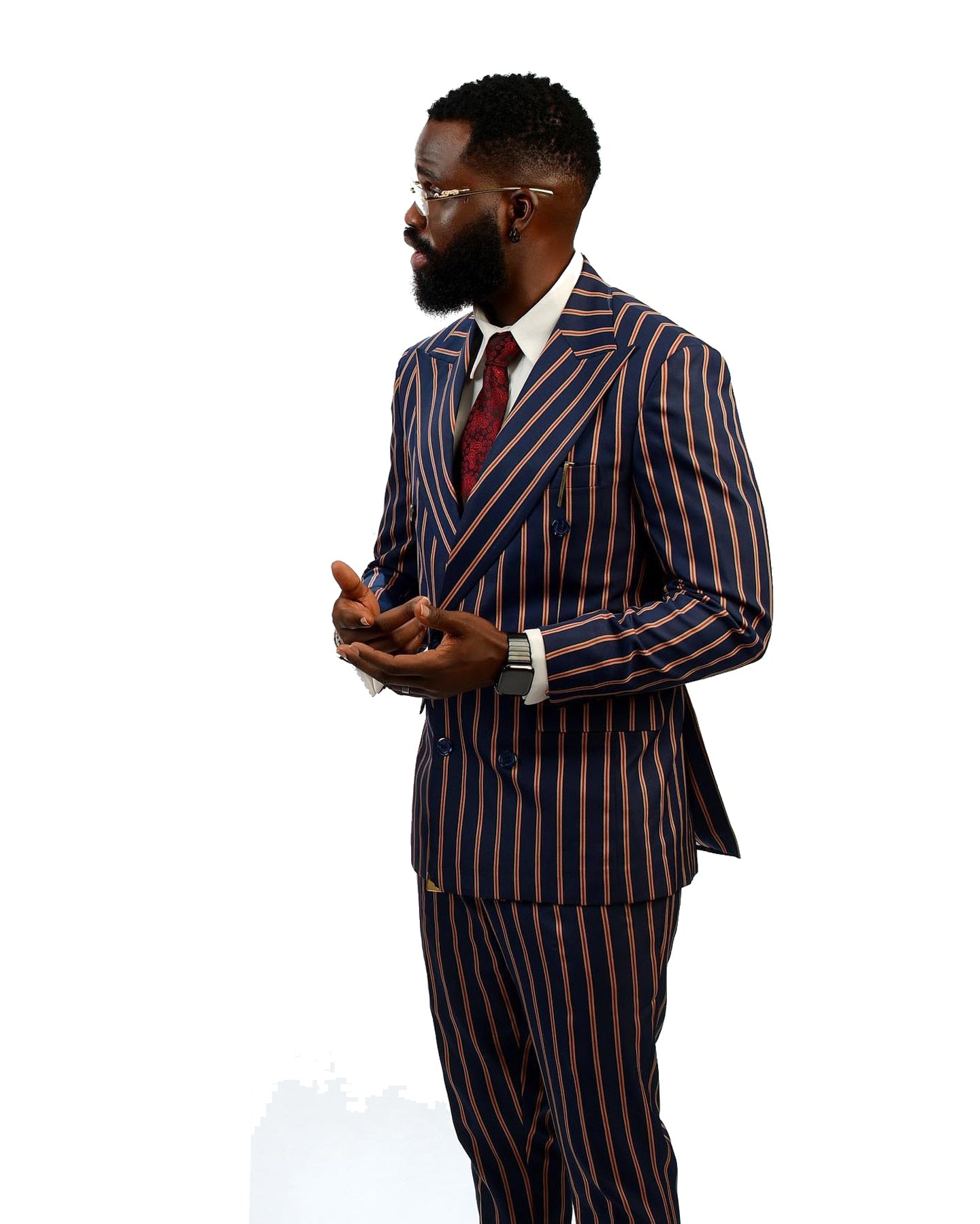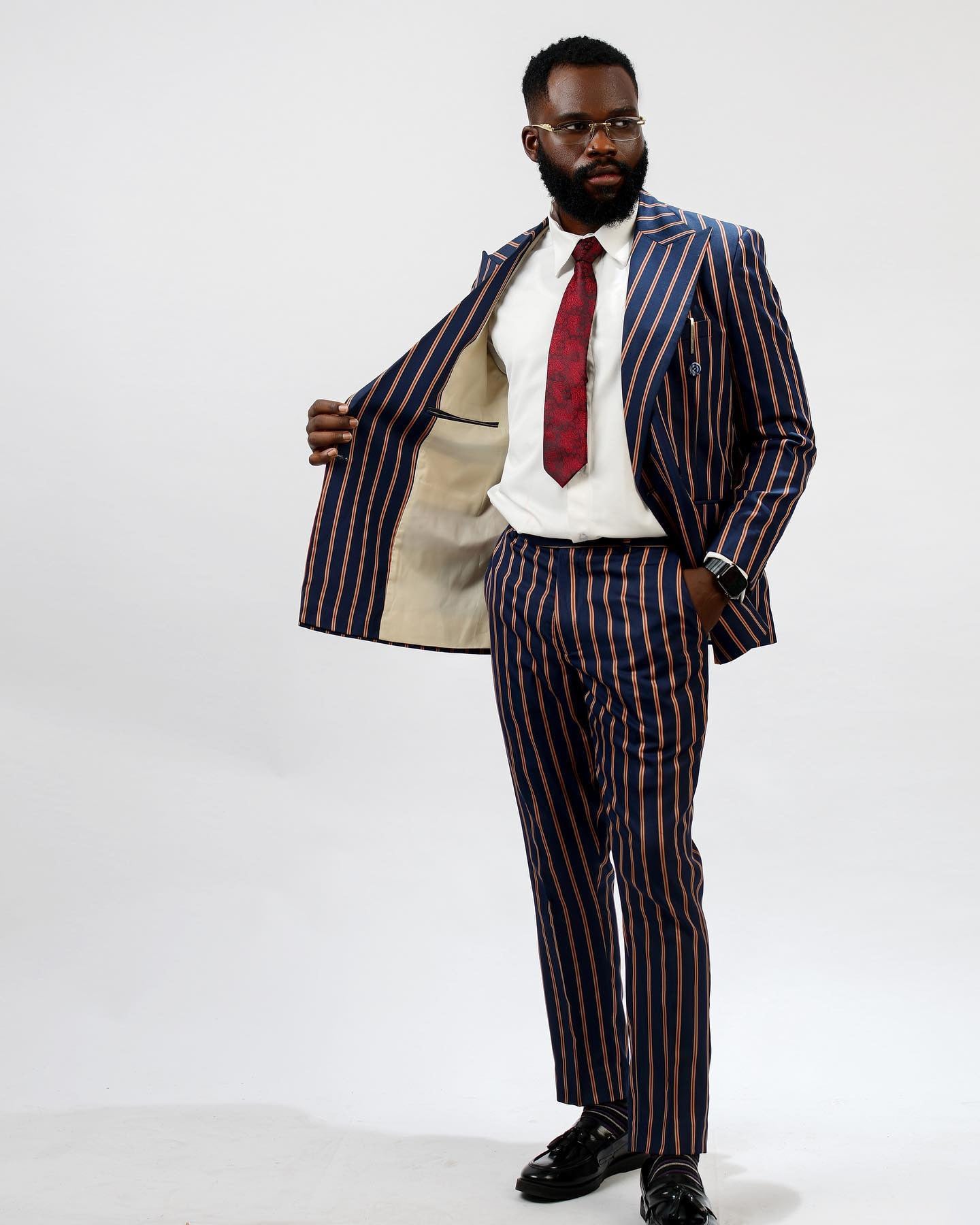 Costume de luxe pour homme, 2 pièces, blazer et pantalon, croisé, revers en pointe, rayures, formel, mariage, marié, sur mesure