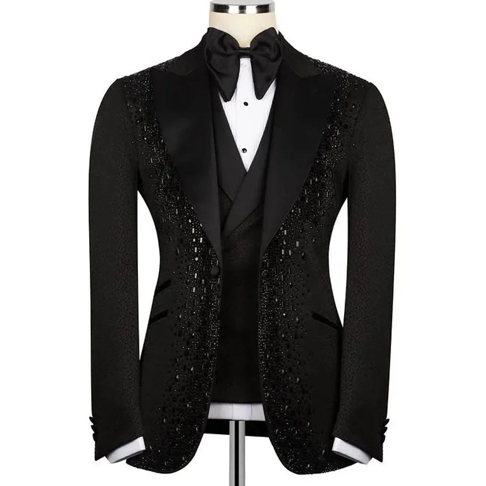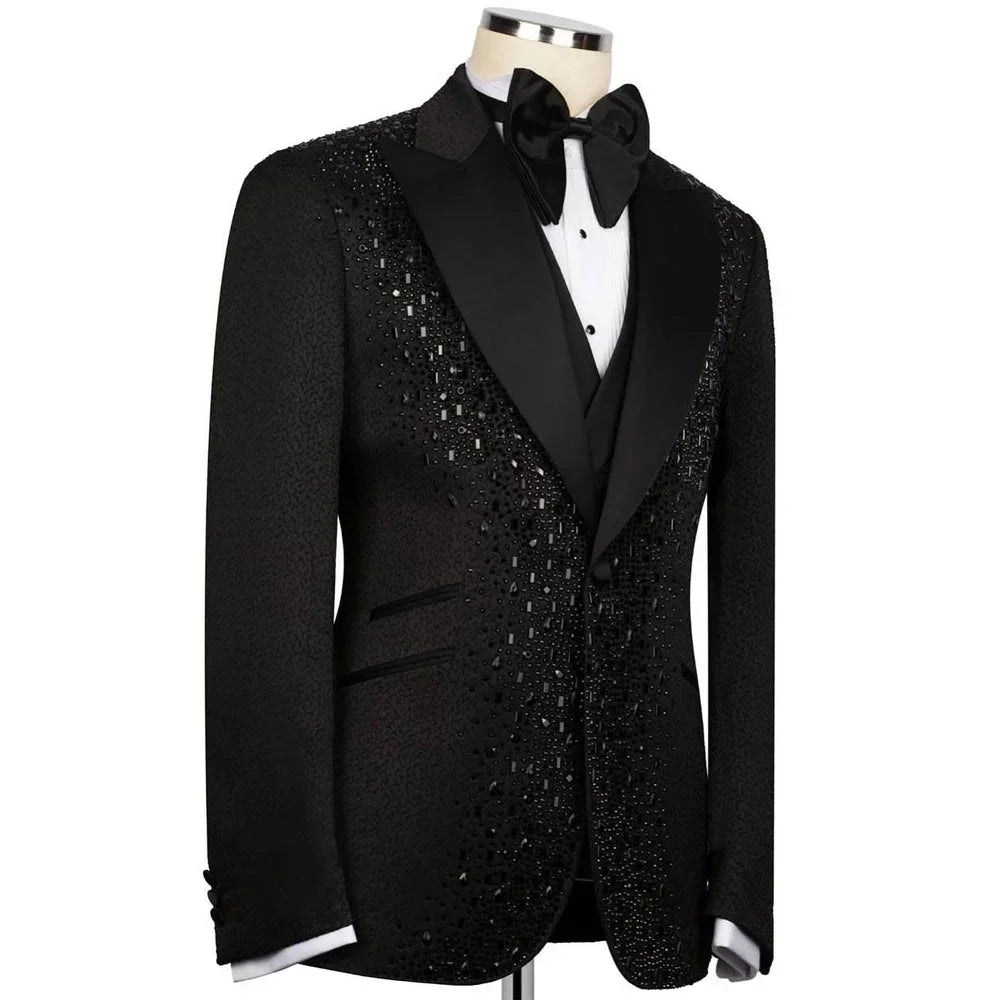 Men Suits for Wedding One Piece Coat Tailor-Made Beaded Peaked Lapel Blazer Rhinestone Groom One Button Customized Only Jacket