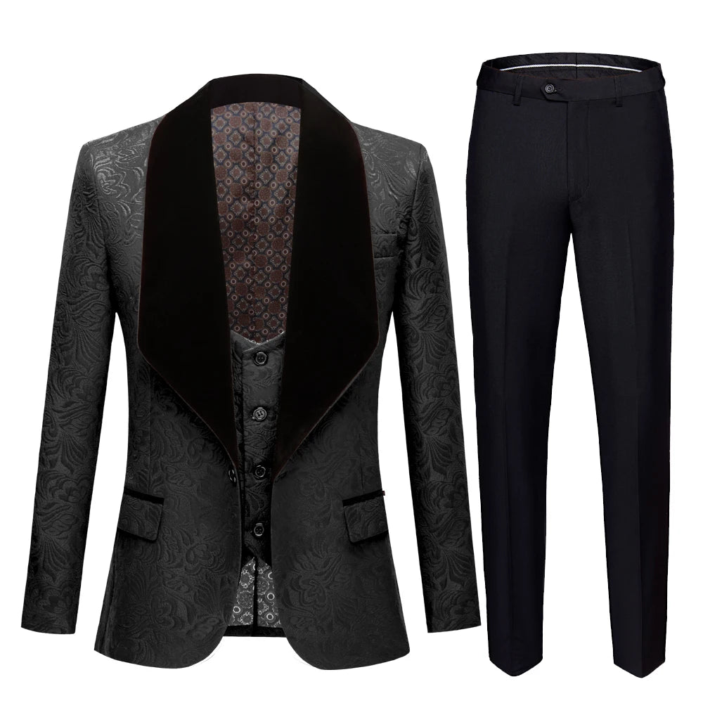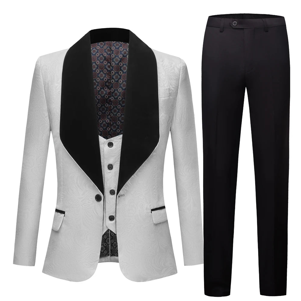 Ensemble 3 pièces pour homme, grand châle, rose, rouge, bleu, blanc, noir, costume de mariage, smoking de banquet en jacquard