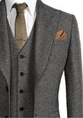 Mens Herringbone Suits 3 Pieces Wool Formal Groom Wear Work Business Customize Tuxedos Blazer Pants Vest for Wedding