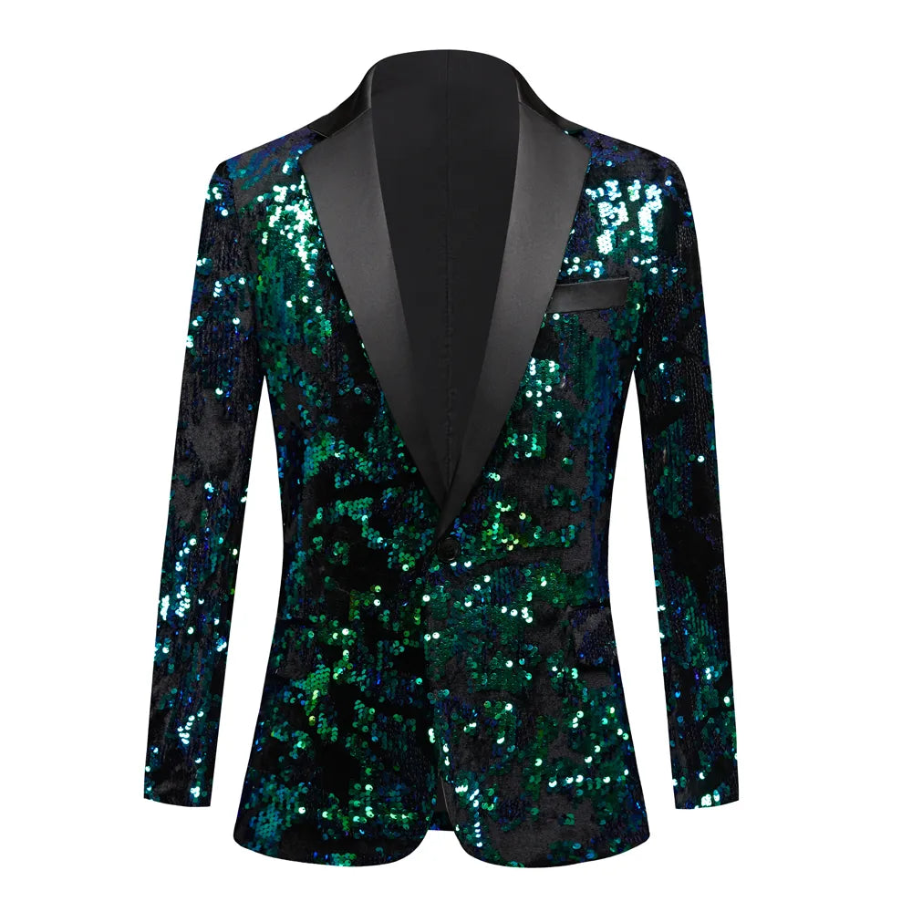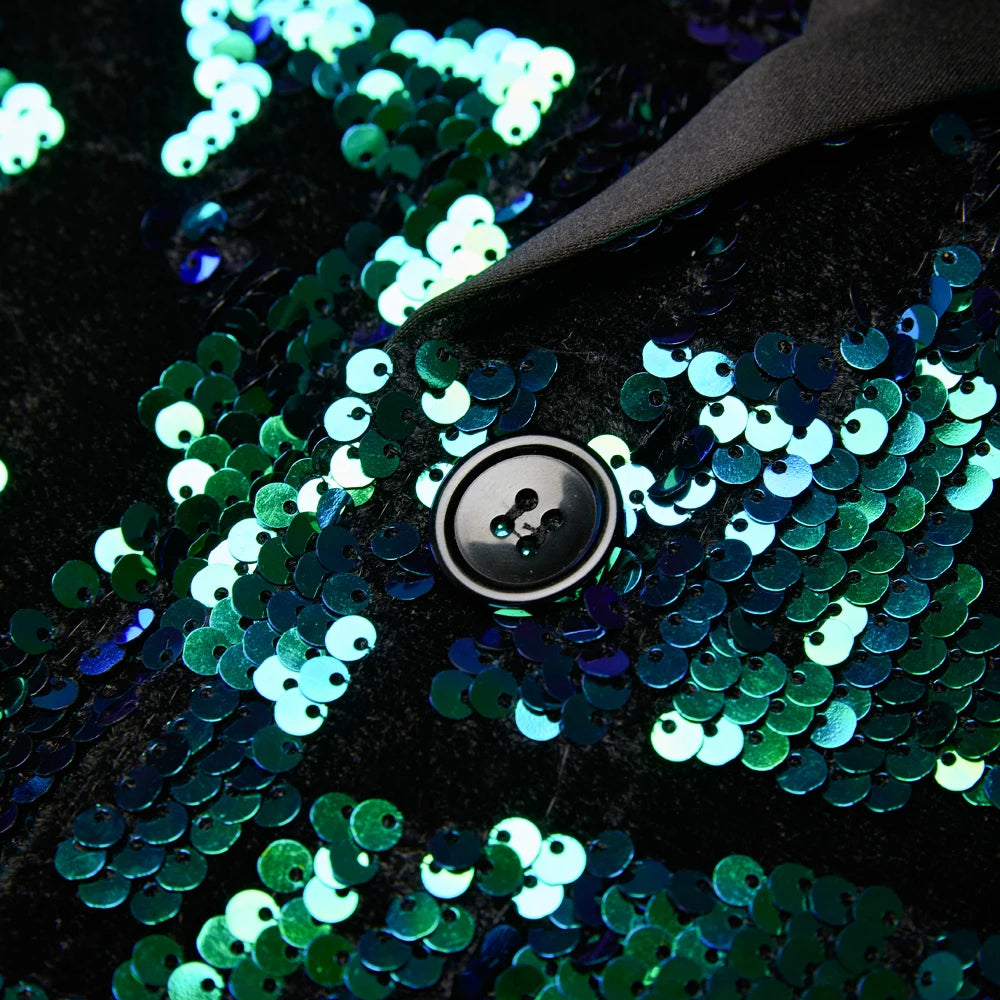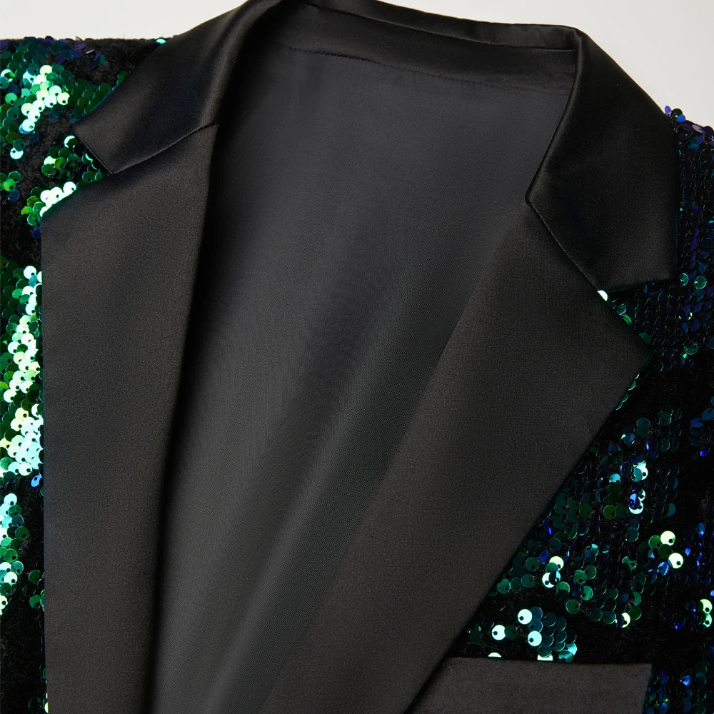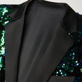 Costume de smoking à paillettes vert brillant pour homme, blazer, col châle, veste de costume, soirée, dîner, mariage, bal, chanteur