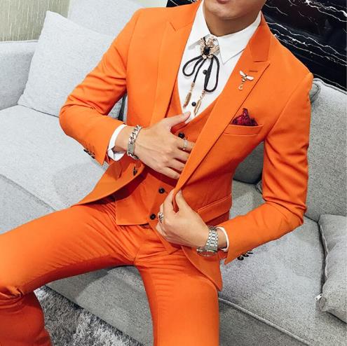 Costume de soirée de mariage orange, coupe slim, 3 pièces (veste, pantalon, gilet)