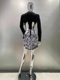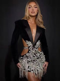 Faites sensation avec cette nouvelle robe tailleur luxueuse à franges et strass pour femme. Conçue pour les femmes avant-gardistes et parfaite pour les soirées internationales ou les événements spéciaux, cette robe glamour arbore des découpes sexy, des strass scintillants et des franges accrocheuses pour un mouvement dynamique. Pour une soirée, une soirée en boîte ou une fête chic, cette robe tailleur allie modernité et luxe audacieux, vous permettant de vous démarquer.
