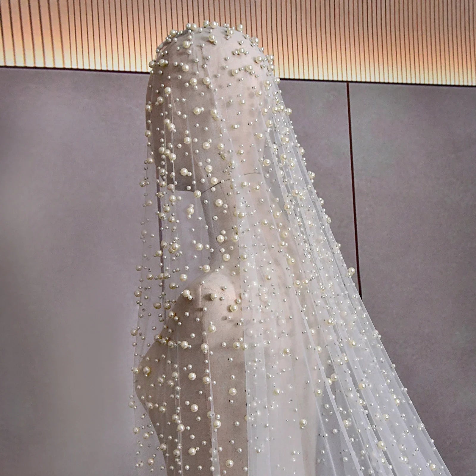 Voile de mariée luxueux orné de perles blanc ivoire – Longueurs : 3 m, 4 m, 5 m, accessoire de mariage élégant avec peigne offert