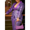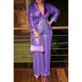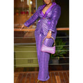 Ensemble pantalon semi-formel grande taille élégant lavande automne hiver col rabattu manches longues tissu pailleté blazer costume deux pièces