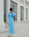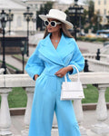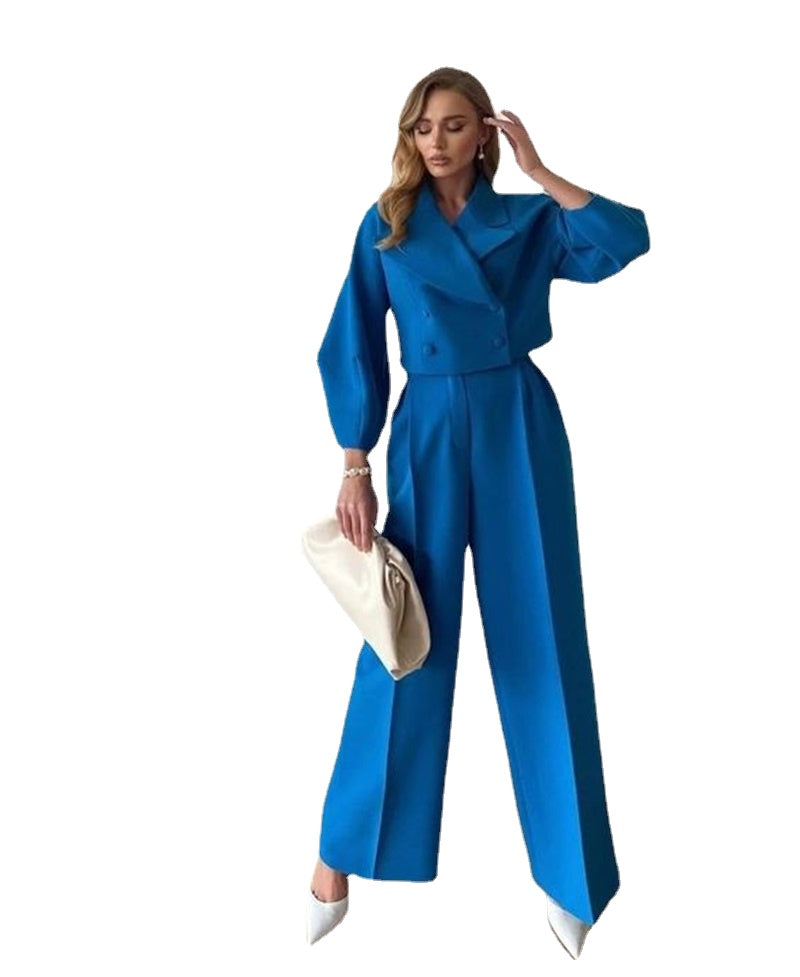Ensemble costume femme bleu roi en laine 2 pièces blazer + pantalon robe de bal de mariage d'hiver veste croisée sur mesure pantalon large