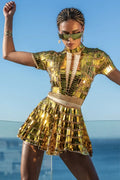 Faites une entrée glamour dans cette robe trapèze sexy à sequins dorés, ornée de cristaux scintillants pour un éclat supplémentaire. Idéale pour les anniversaires, les soirées en boîte, les spectacles de danse, les bals de fin d'année ou les soirées, cette robe courte offre une silhouette flatteuse et des options grandes tailles pour les femmes en quête de style et de confort. Brillez de mille feux et dominez la nuit !